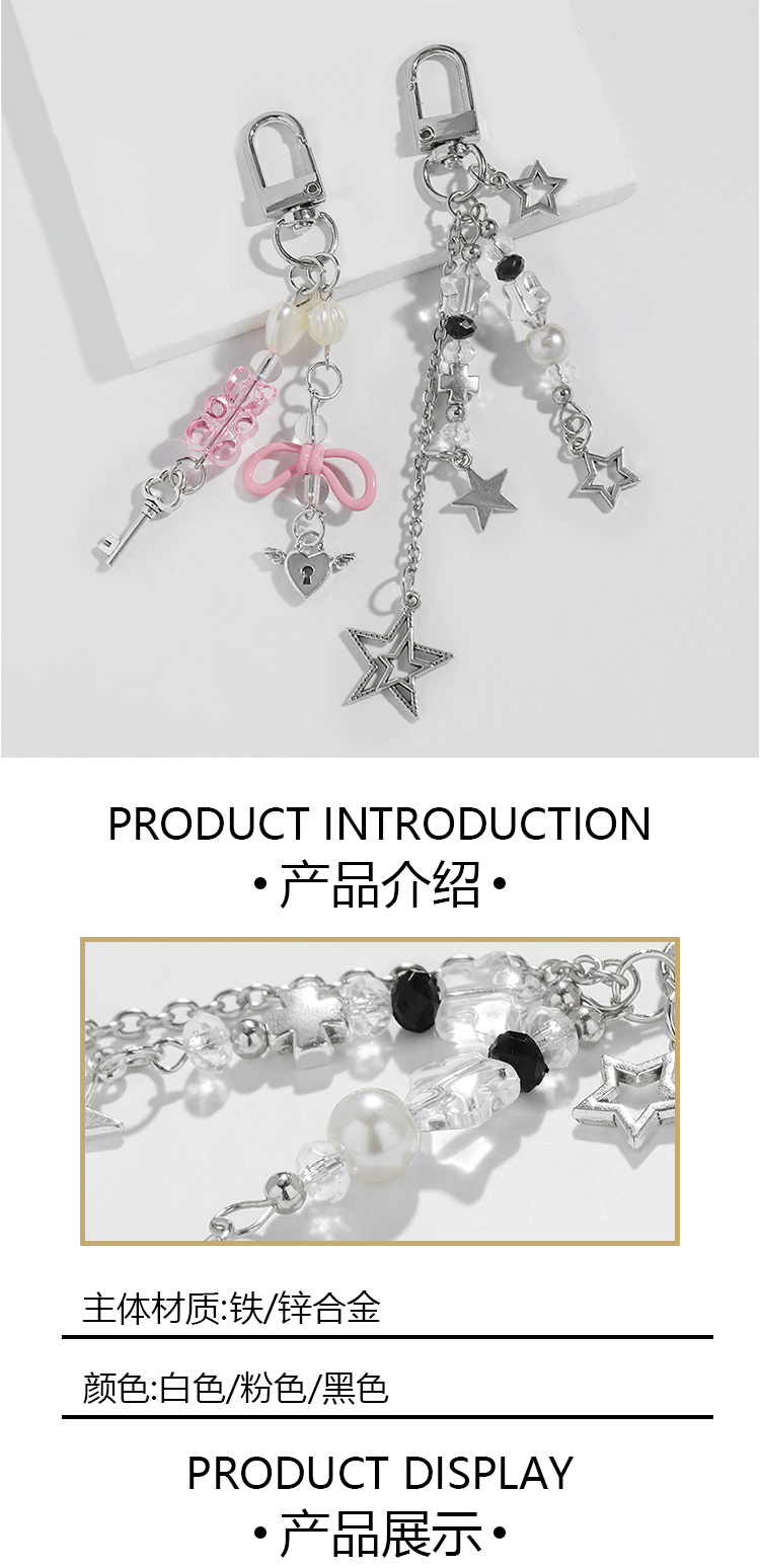 ギャル風透かし彫り蝶結び五角星チャーチの矢熊創意透明ビーズキーホルダー