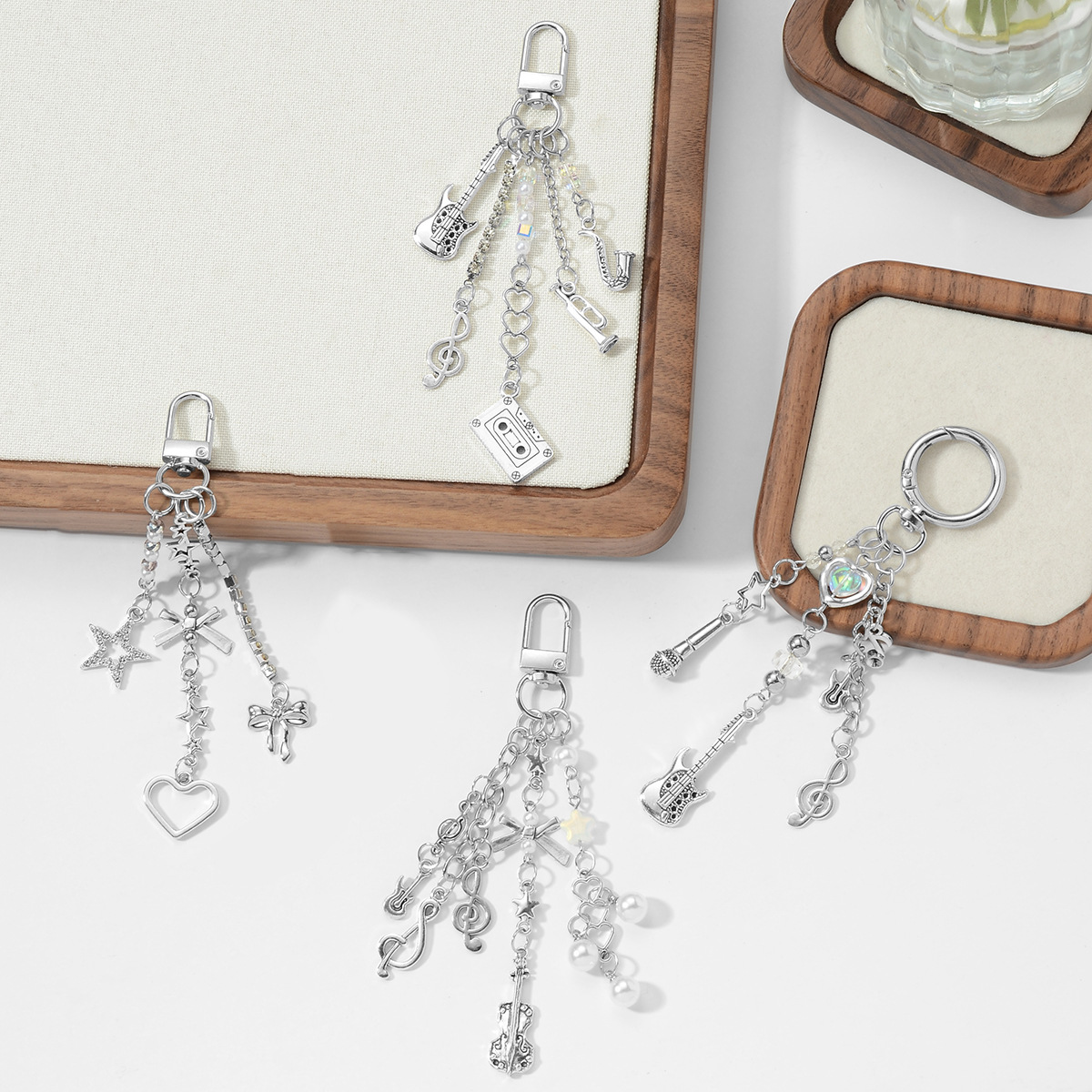 个性时尚音乐节系列仿珍珠水钻爪链乐器音符镂空爱心星星钥匙扣