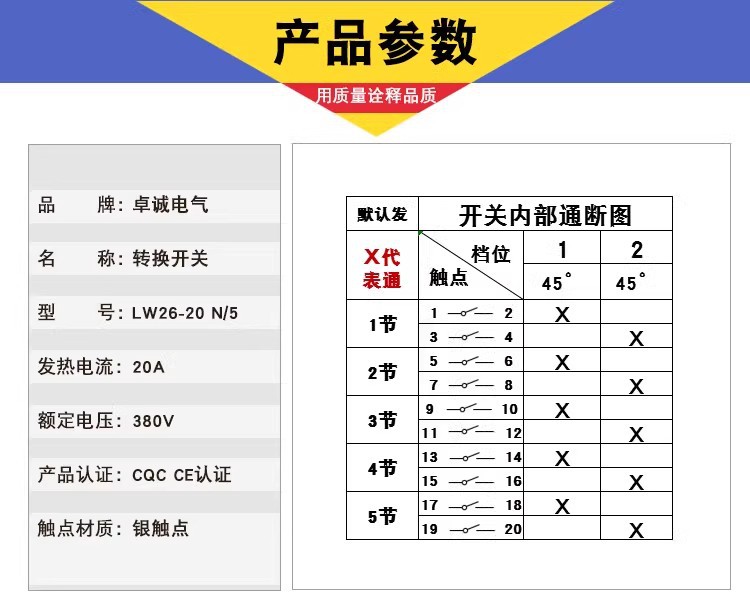 LW26-20 0-4/2五段の万能変換スイッチ単線四路電源切替調圧セット20a