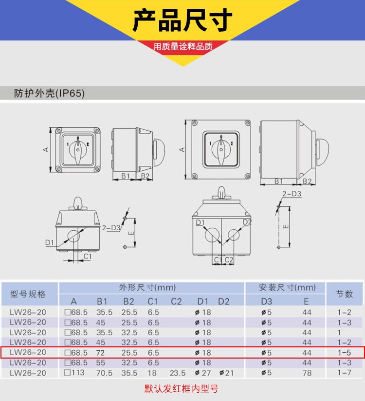 LW26-20 n/5防水ケース付き二段五線二重電源切替五刀二重投20a万能切替スイッチ