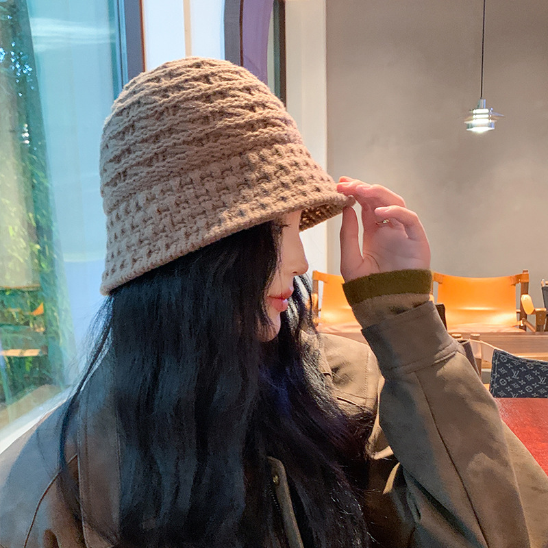 日本の新しい女性のニット無地ウール帽子秋と冬の屋外遊び暖かい顔見せ小さなバケツ帽子トレンディ
