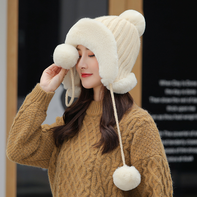 韓国スタイルのかわいい女性の毛皮のような耳暖かい帽子アウトドアレジャー秋と冬暖かいプルオーバー帽子メーカー卸売