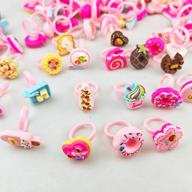 プラスチック子供ピンクリングリングリング女の子アクセサリーフルーツケーキリング小さなおもちゃ幼稚园プレゼント