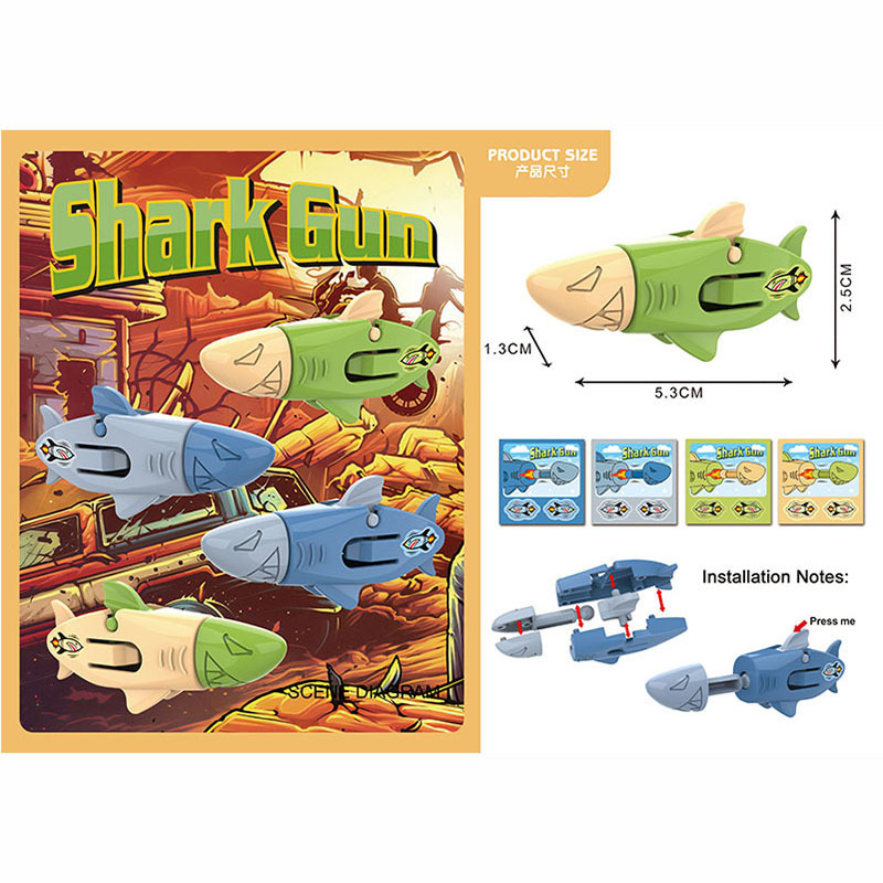 サメのおもちゃのサメの頭を組み合わせて、知育インタラクティブな小物を発射することができます。