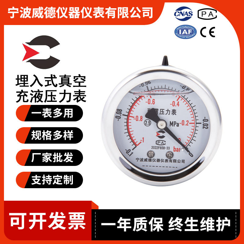ステンレス真空負圧充液圧力計埋め込み式圧力測定計卸売り多目的油圧計