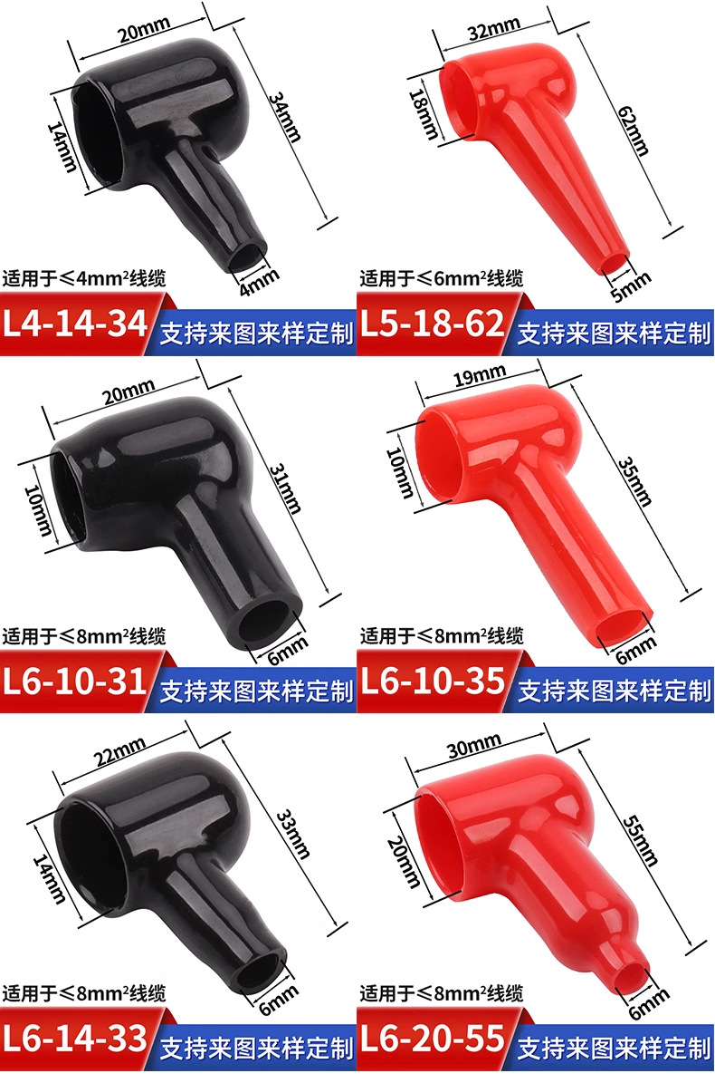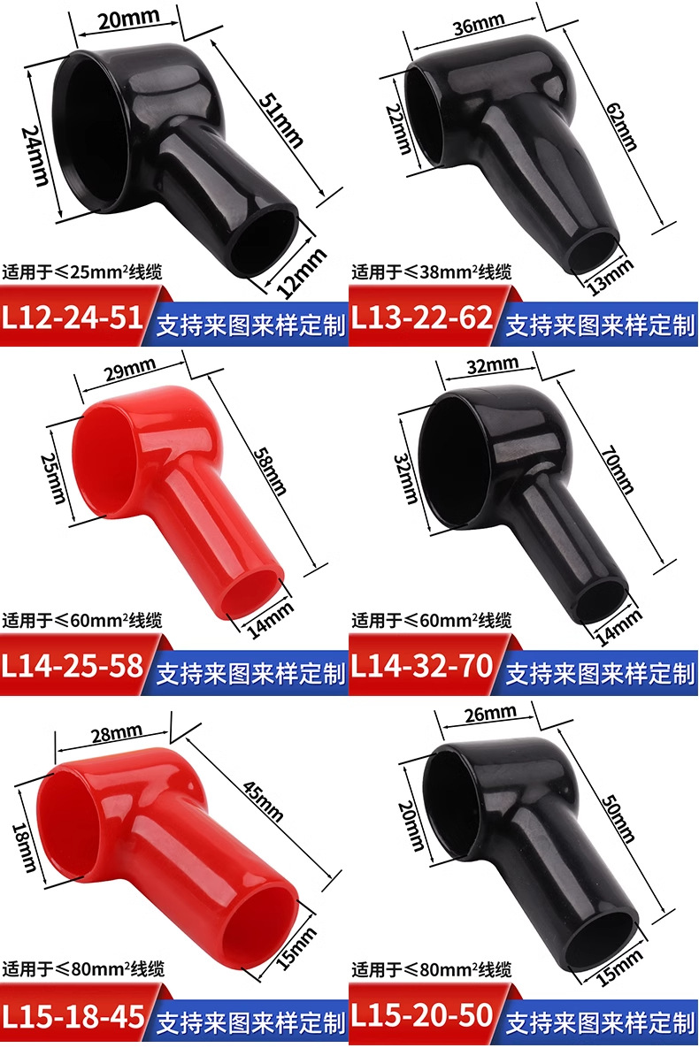 电瓶极柱绝缘护套 烟斗型端子电瓶线束帽软胶套