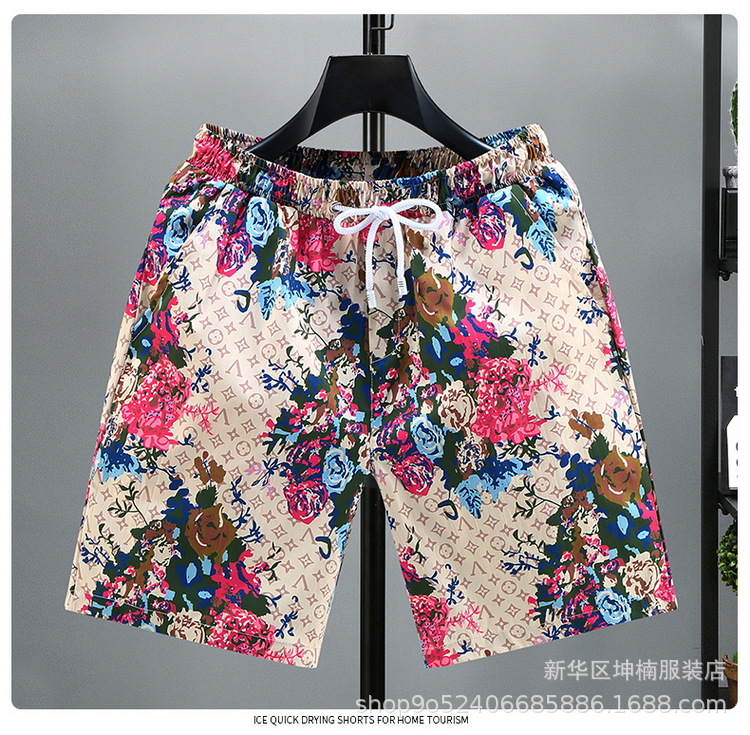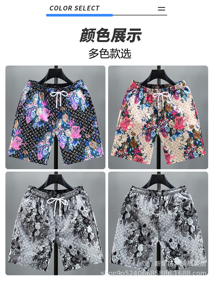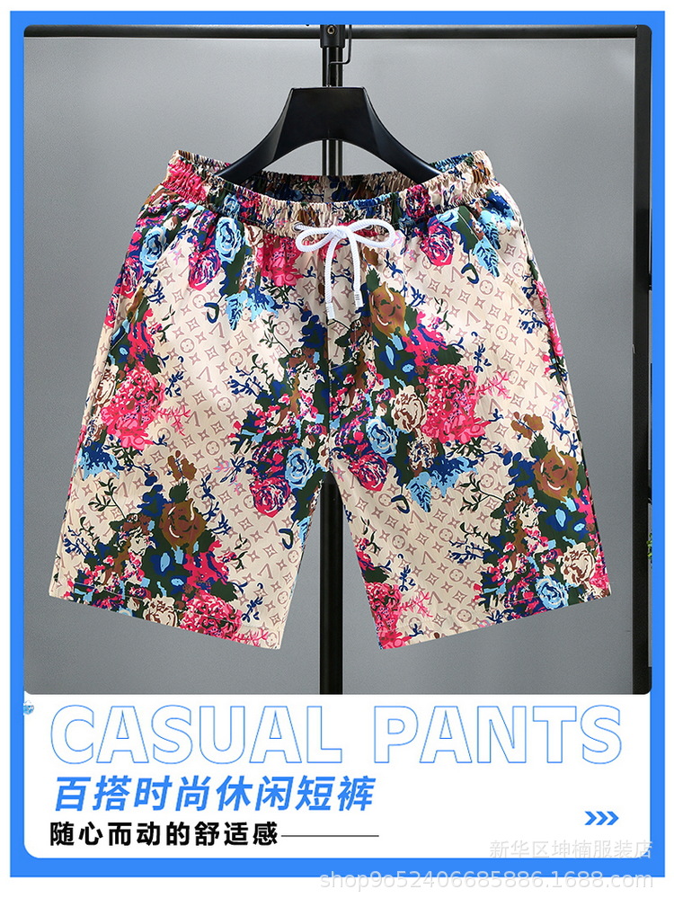 国境を越えた欧米のメンズの5分のズボンのファッションのレジャーの薄い金のバラのビーチのズボンの外は運動の花のズボンの大きいパンツを着ます。