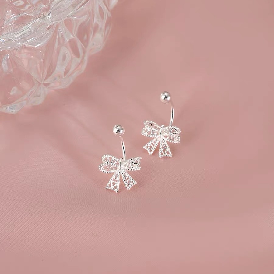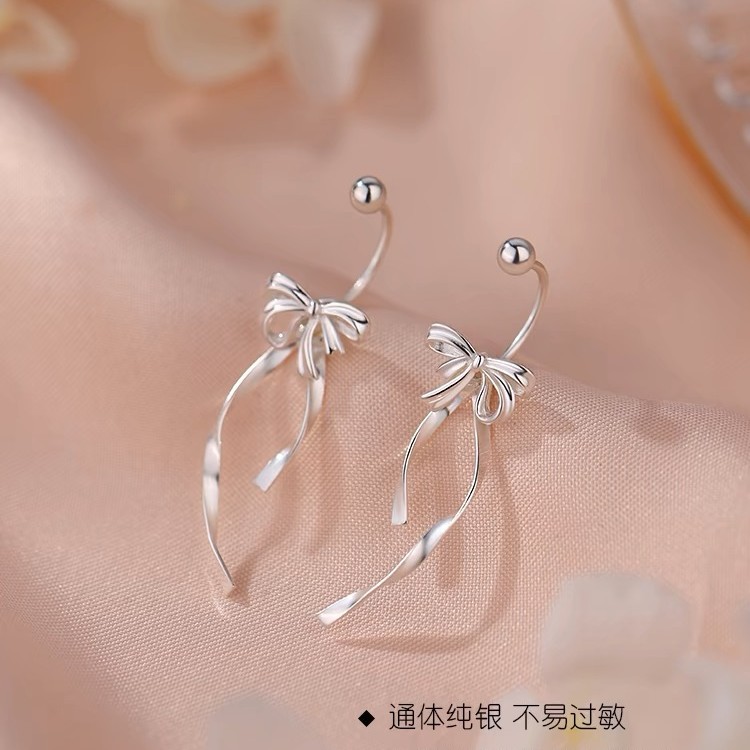 S999純銀バレエリボン蝶結びピアスのネジを締めて、女性の高級シンプルなアクセサリーの卸売りをします。