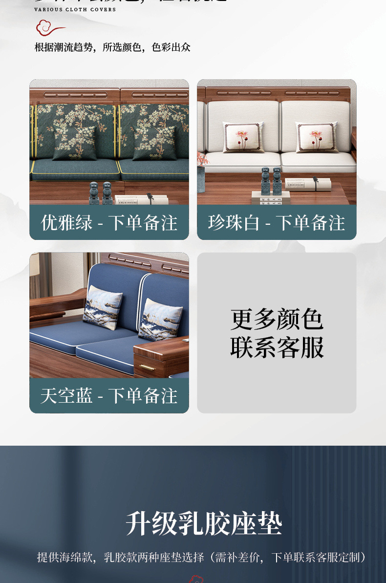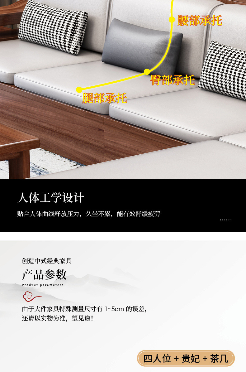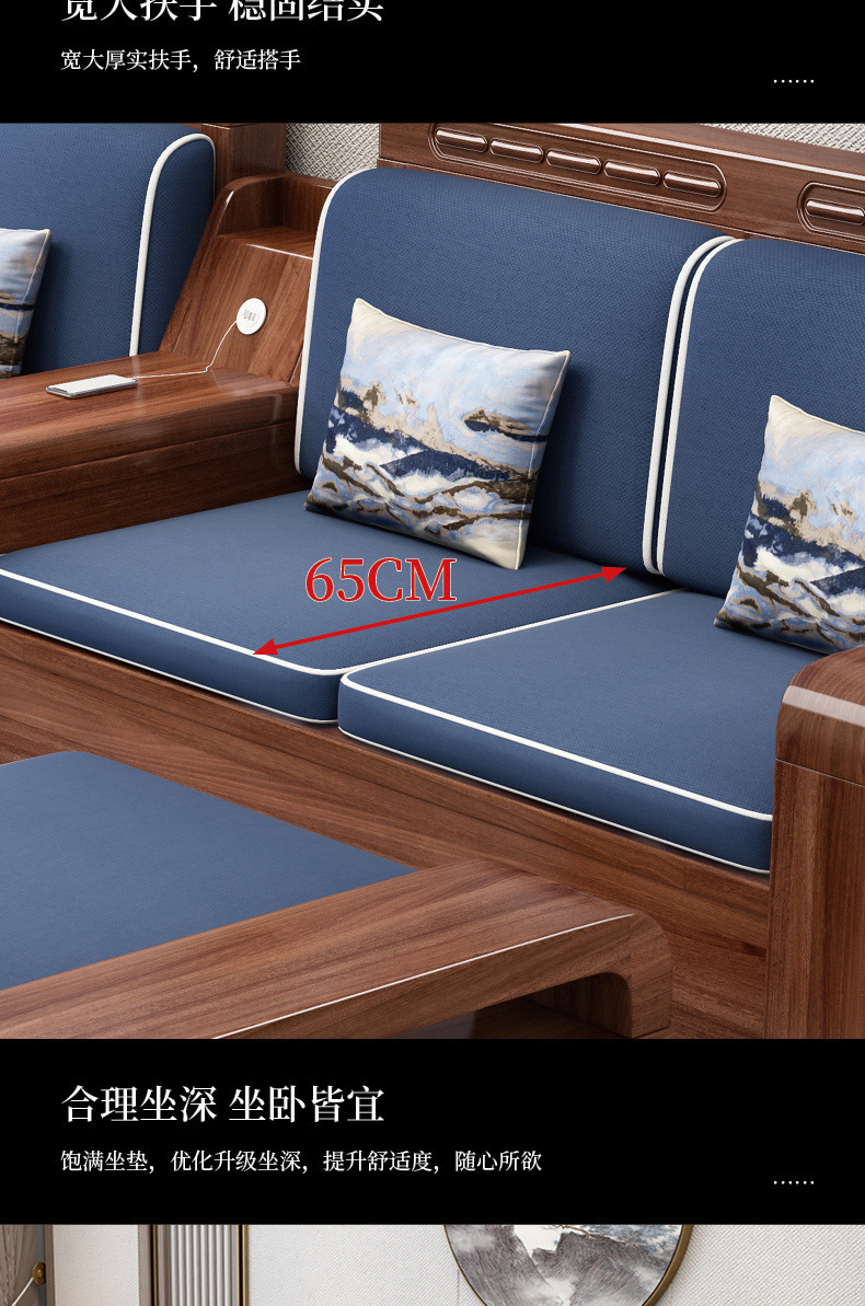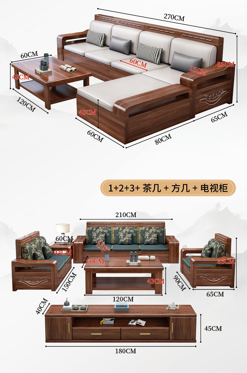 胡桃木実木ソファー高箱貯蔵物セット新中国式ソファーシンプル客間大戸型冬夏両用