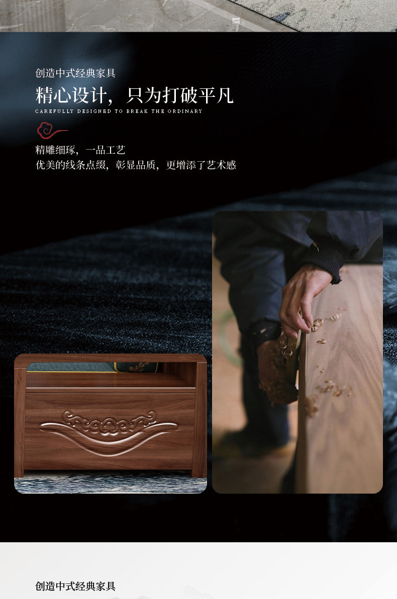 新中式黑胡桃木实木沙发冬夏两用转角储物雕花简约小户型客厅家具