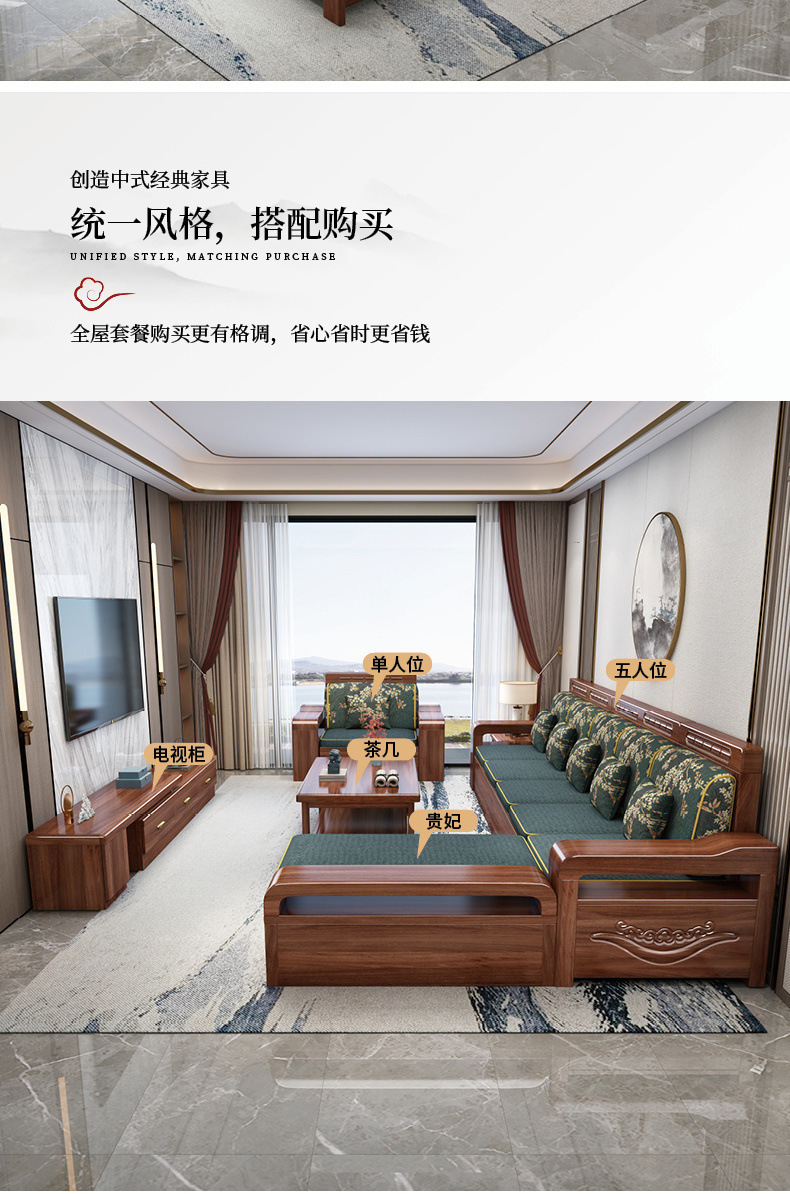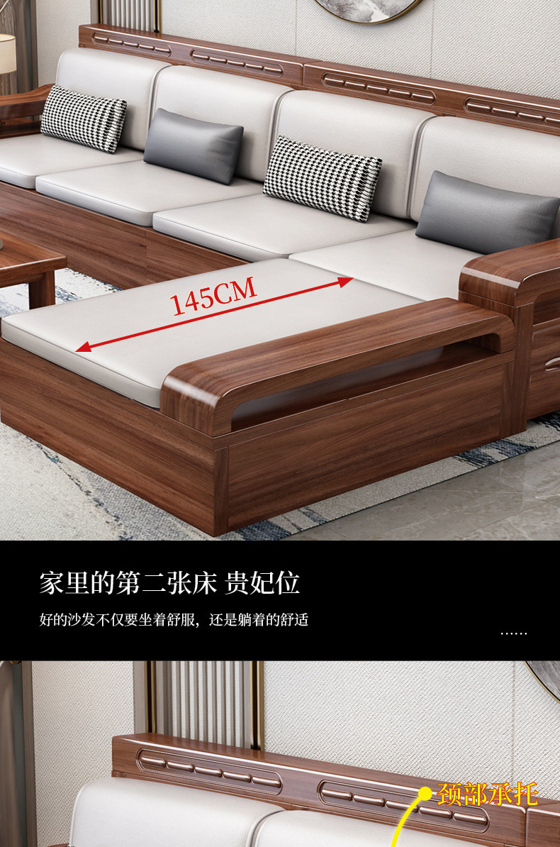 中国式胡桃木客間全実木ソファー冬夏両用大小戸型現代シンプル木製貯蔵家具