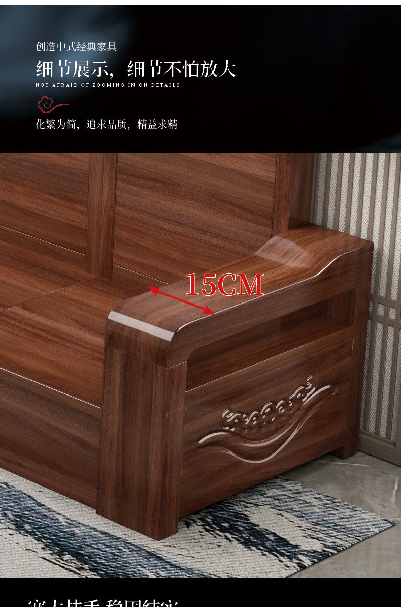 新中国式黒胡桃実木ソファ客間現代シンプルな小戸型手すり収納箱式木製ソファ