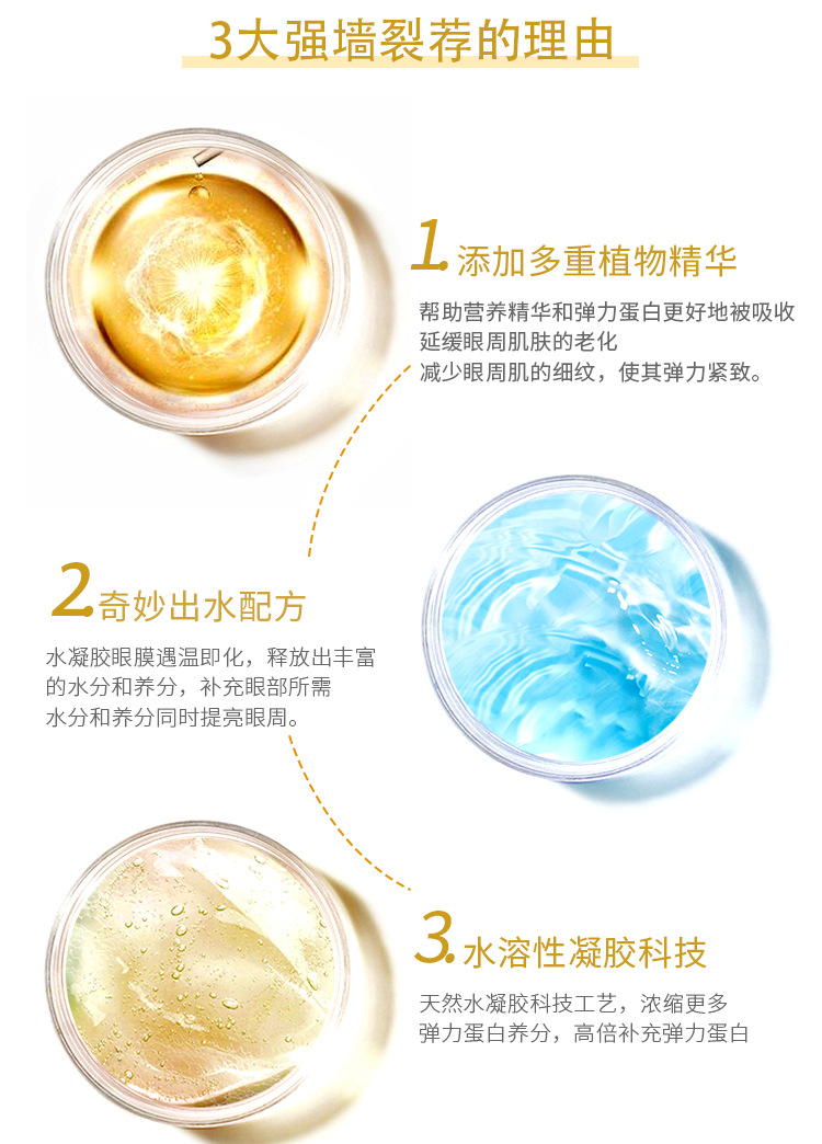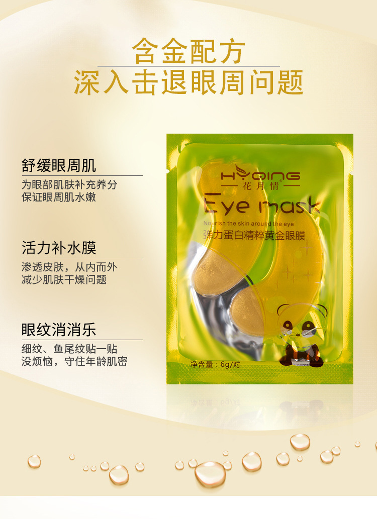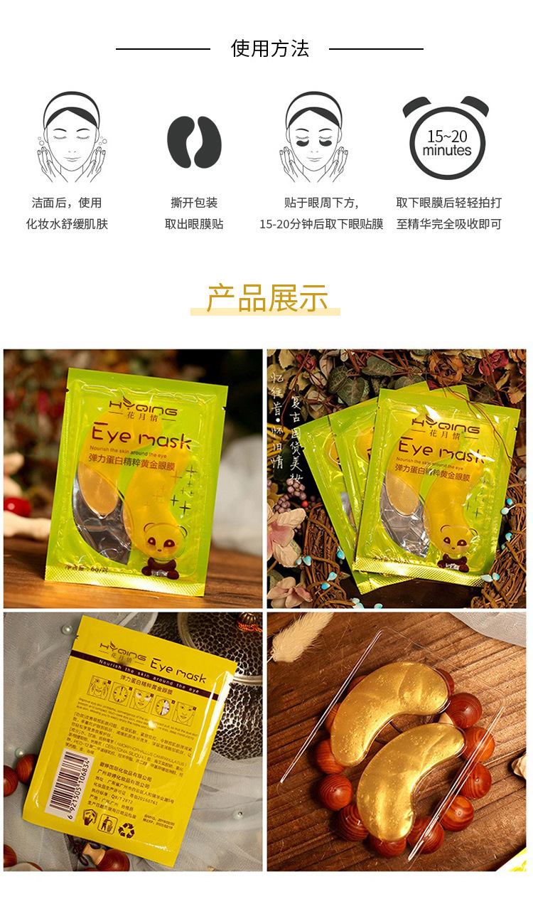 製品仕様 Huayueqing ゴールド アイマスク 1 ペア/バッグ,贅沢なジェリーアイマスク 1組/袋