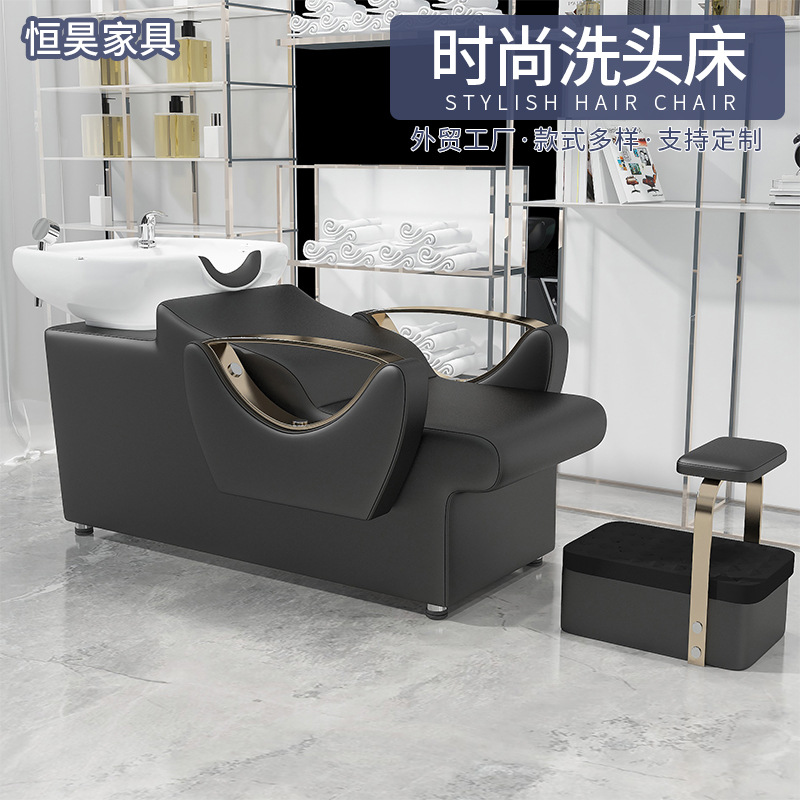 洗髪ベッド 理髪店 半寝式 足置き付き 洗髪・洗浄ベッド シンプル レザー風 セラミック製洗面器 マッサージ洗髪ベッド