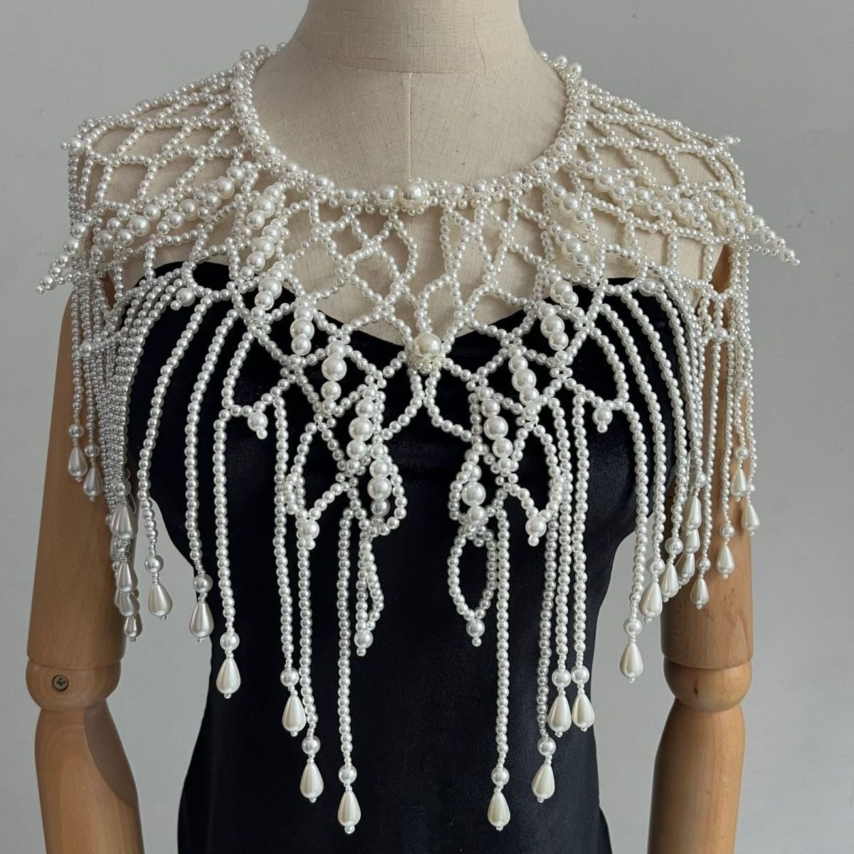 手作り真珠数珠宮廷復古チャイナドレス真珠ストール水滴流蘇雲肩