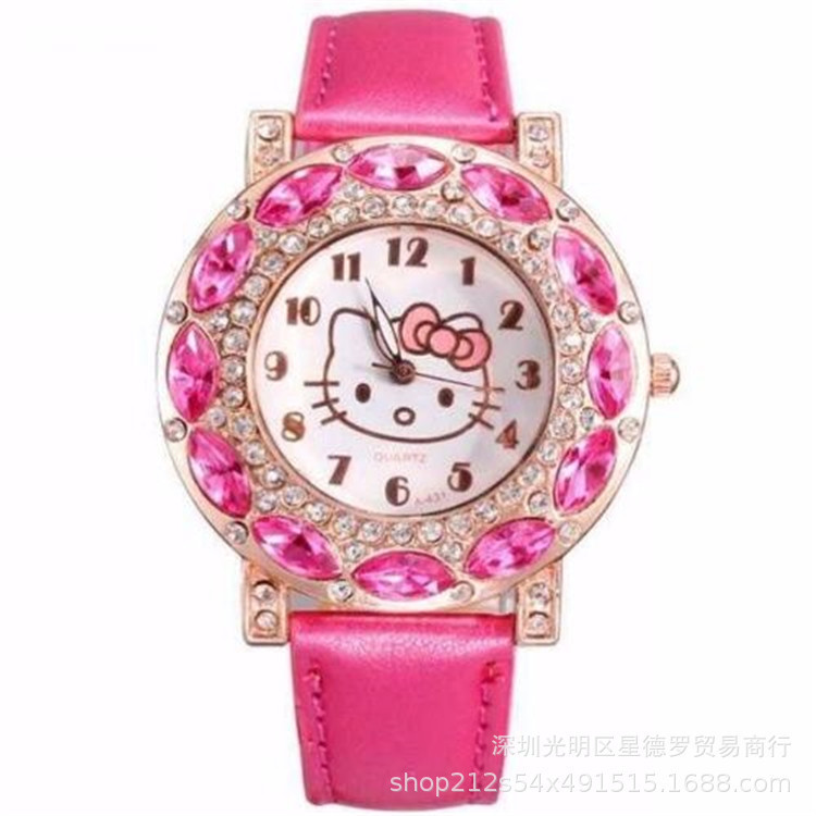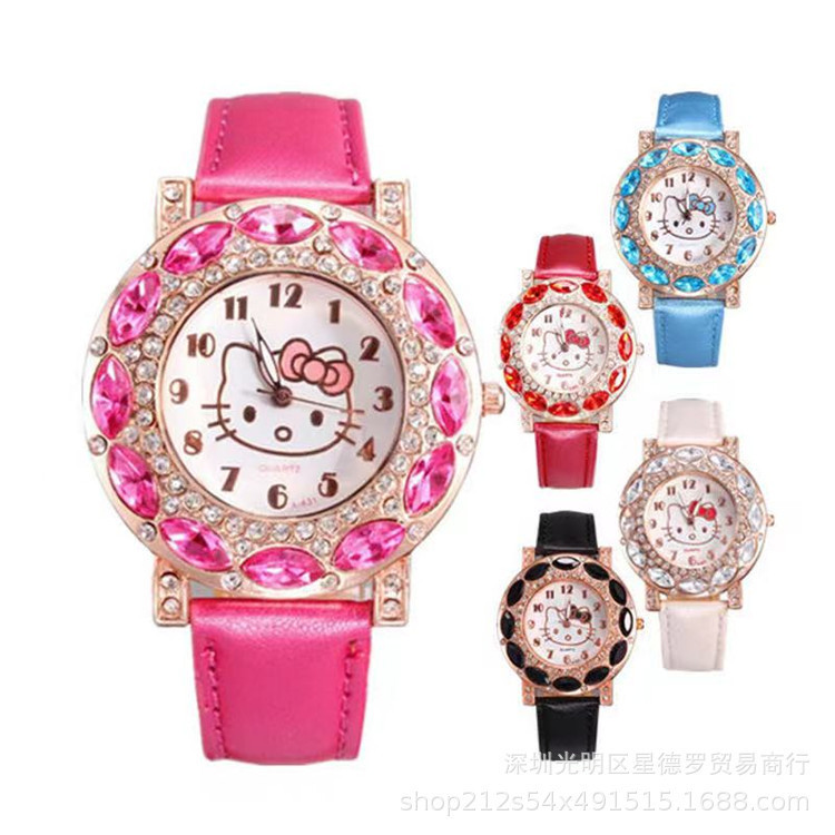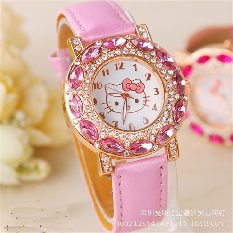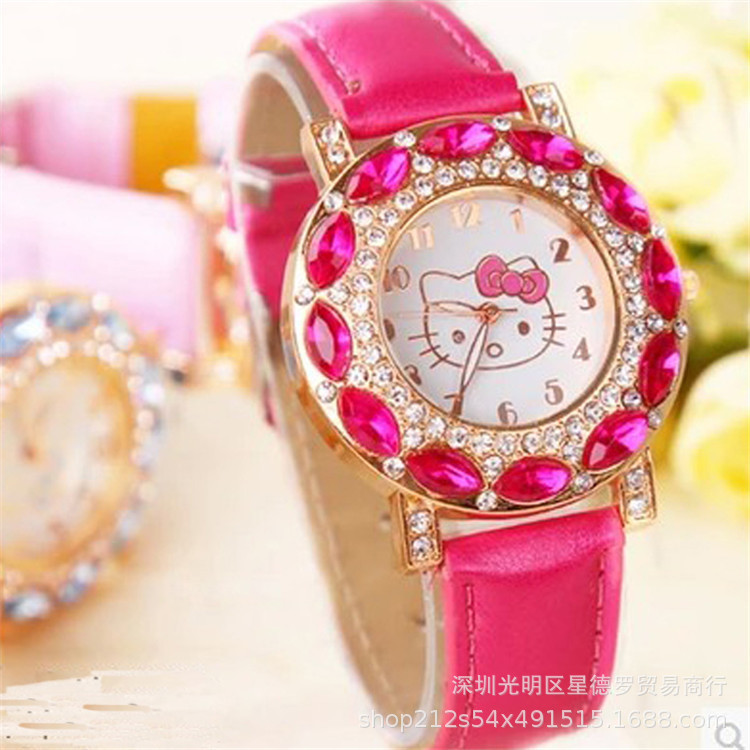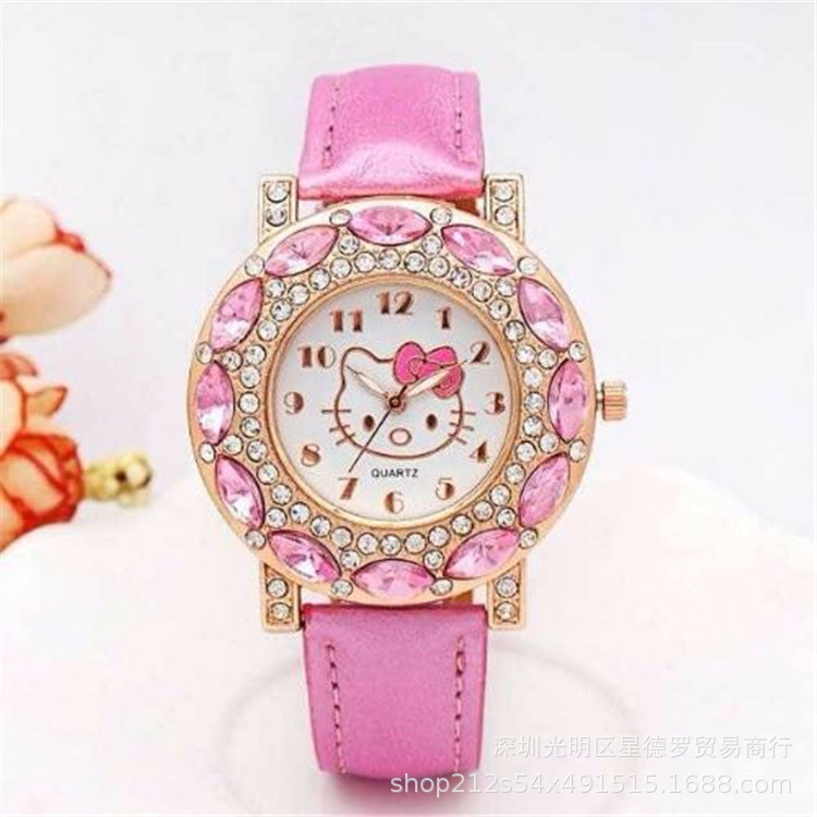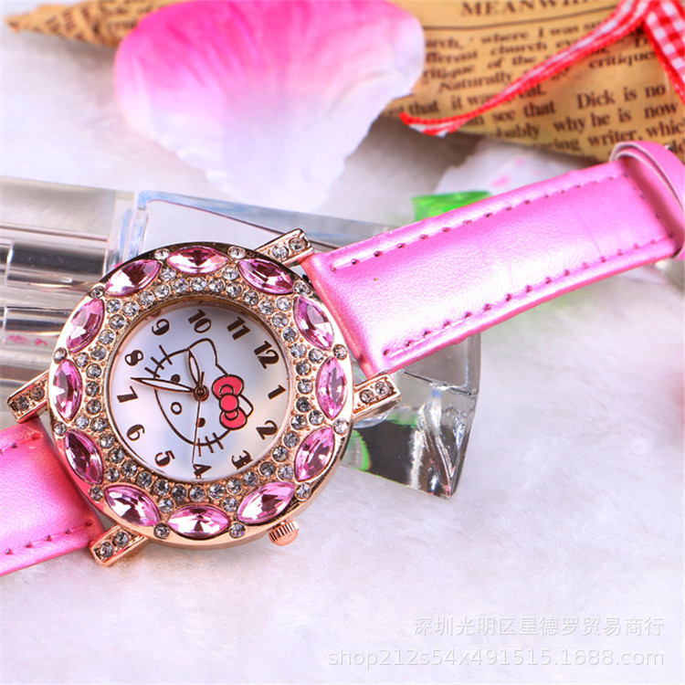 外国貿易人気の子供用漫画 kt 猫時計男性と女性の学生ファッションベルトダイヤモンドレディースクォーツ時計ダイヤモンドモデル