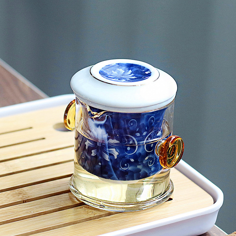 耐熱ガラスティーポット家庭用紅茶カップセラミックフィルター両耳ガラス花ティーポットシンプル青花茶器