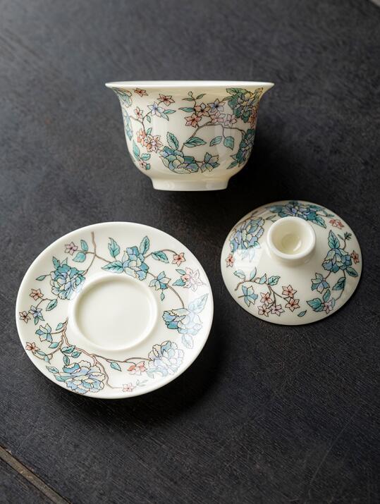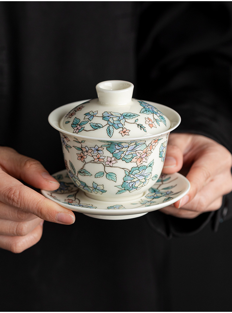 羊脂玉磁器百財蓋碗白磁茶碗新商品創意家庭用白菜陶磁器工夫茶器蓋付きカップ