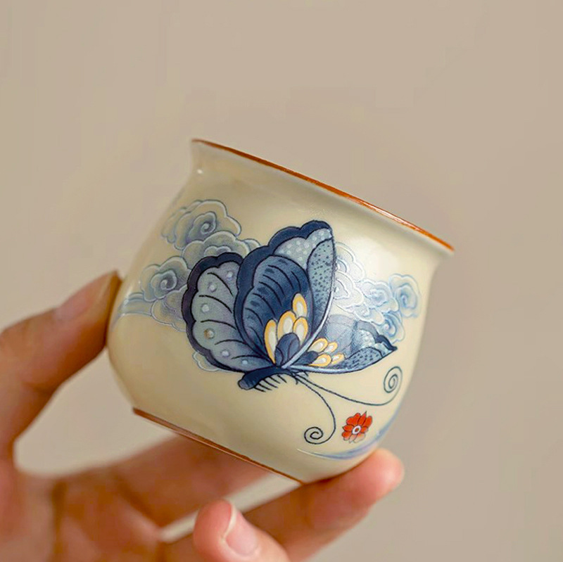 影雕蝶恋花主人杯シングルカップ女性個人専用茶器茶品茗杯家庭用高級カップ