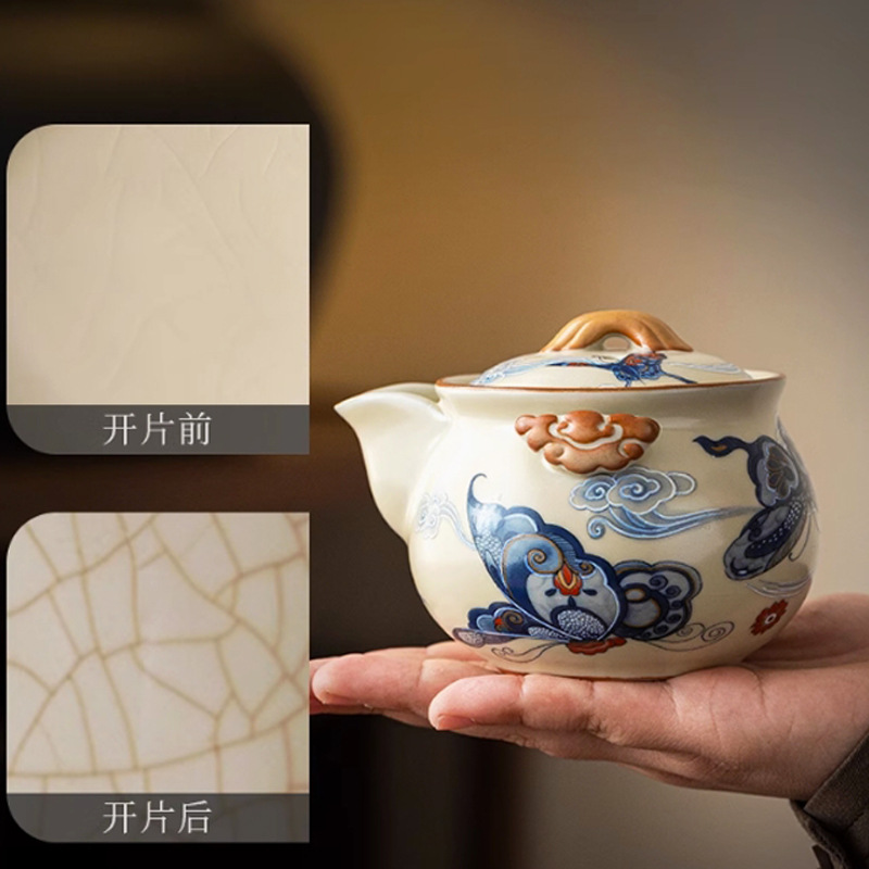 黄汝窯工夫茶器セット手掴みティーポット1杯2杯は目上の父親の先生に祝日のプレゼントを贈る