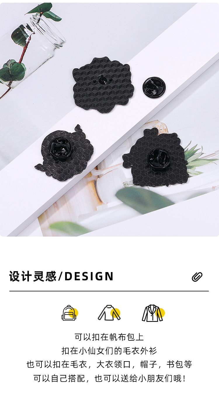 黒猫と植物ブローチ学生漫画バッジリュックサック装飾品アクセサリーピンクロスボーダー外国貿易人気バッジ