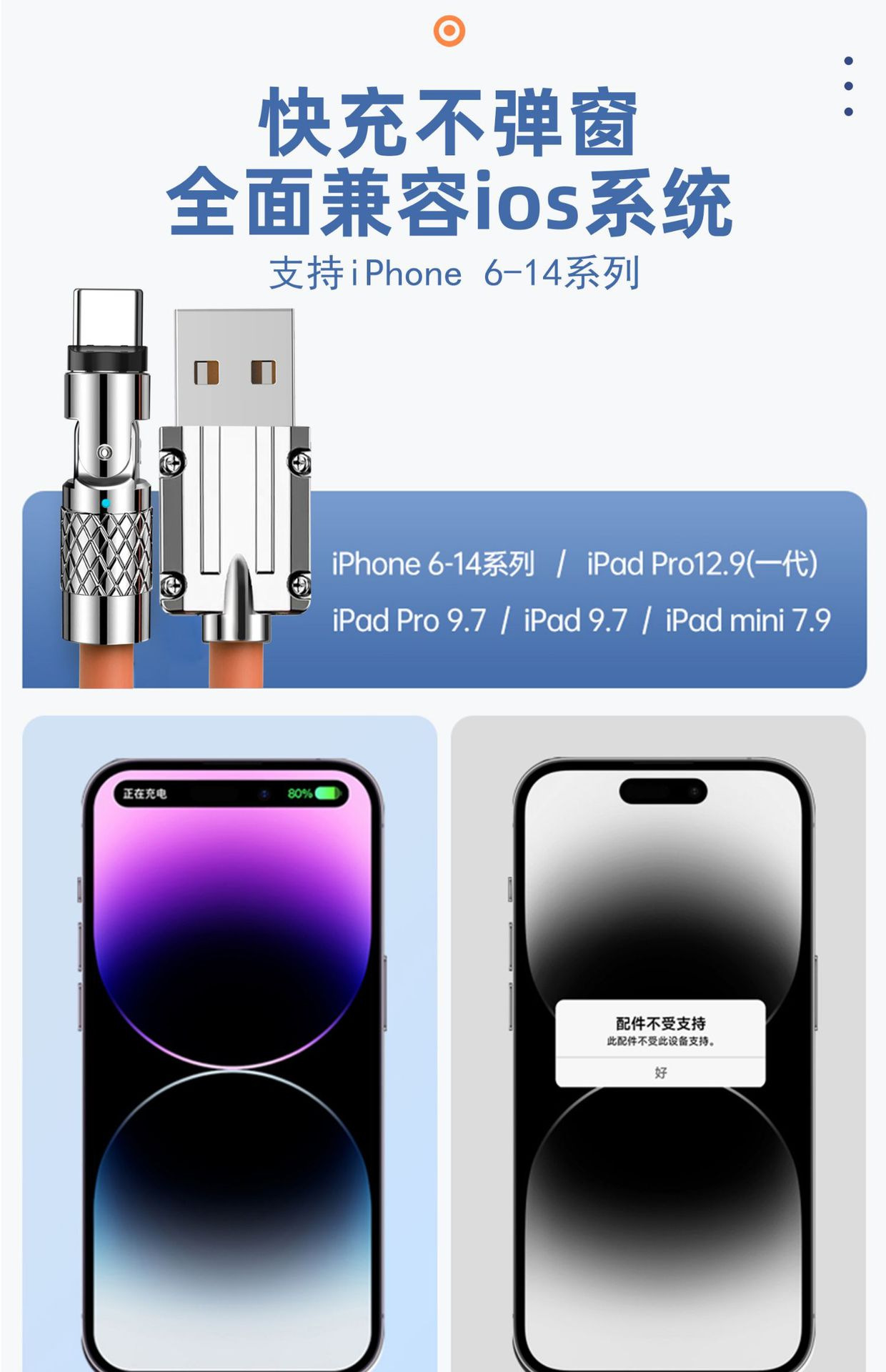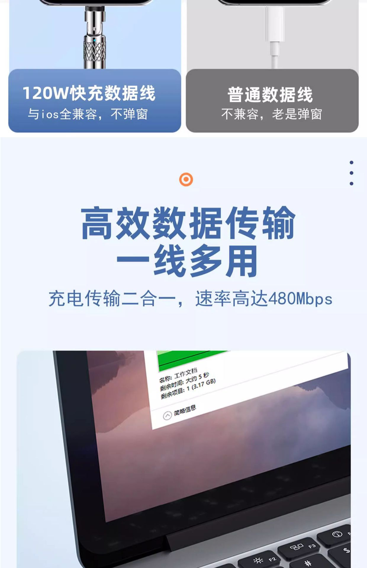 540度極客usb磁気吸引回転高速充電ケーブルTYPE-C充電ケーブル