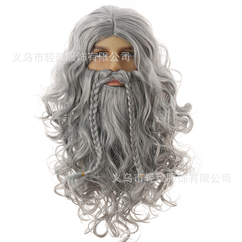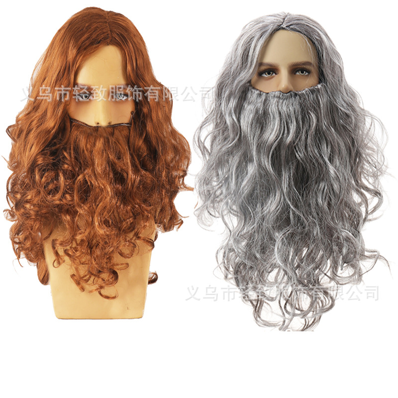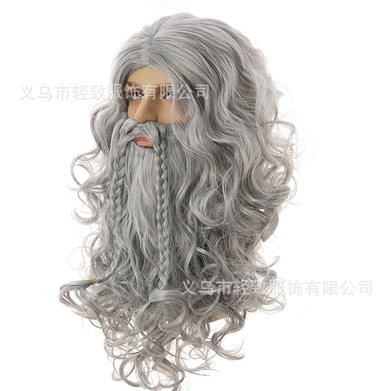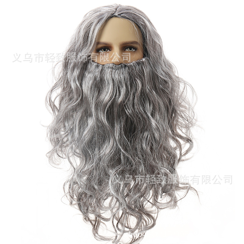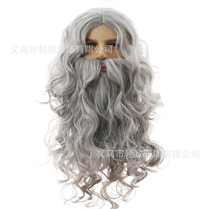 ハロウィーンイエスかつらサンタクロースかつらひげ呪術師かつら欧米長巻きクリスマスかつらひげ