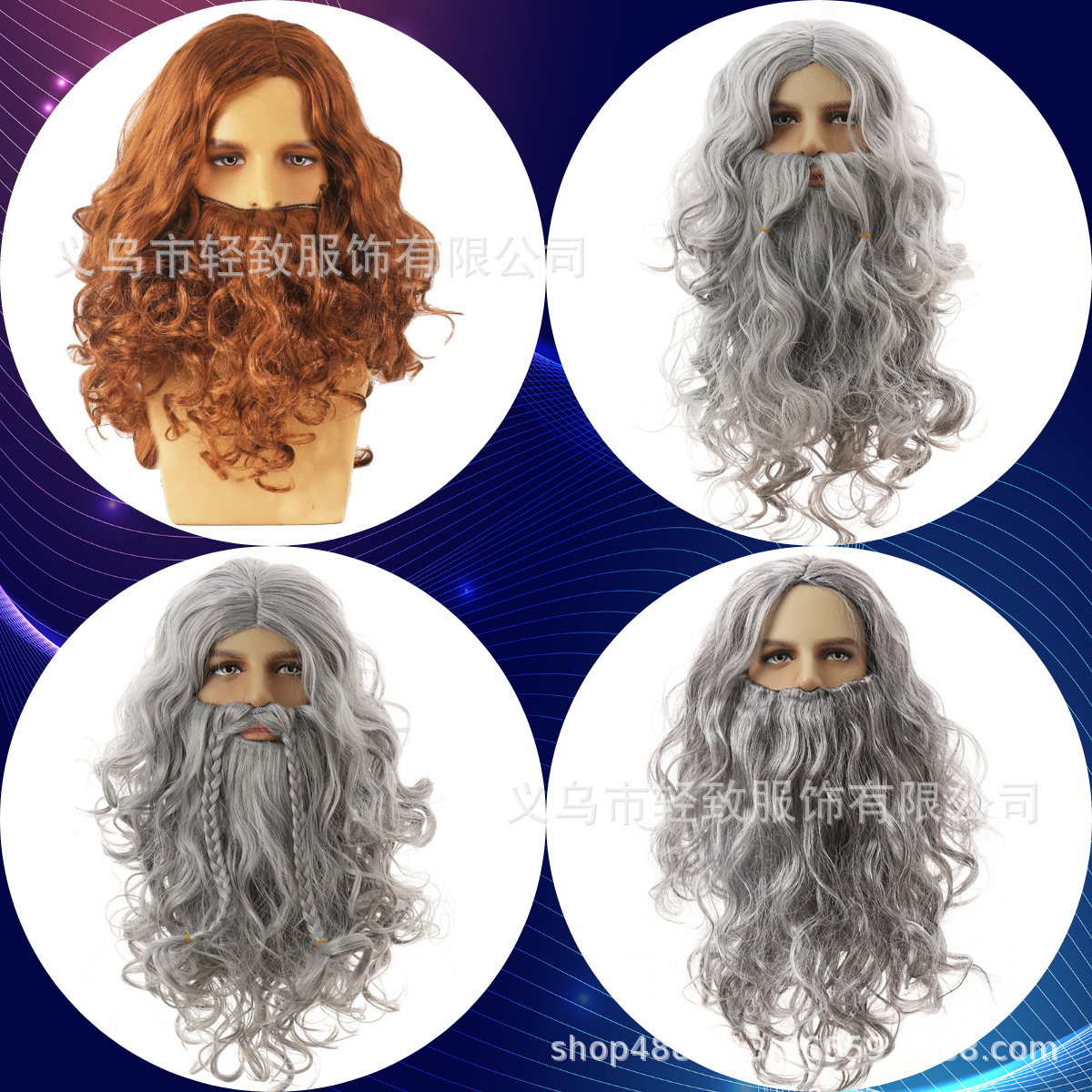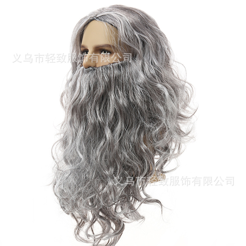 希音TEMU圣诞节表演假发耶稣假发胡须魔术师假发圣诞假发胡子套装