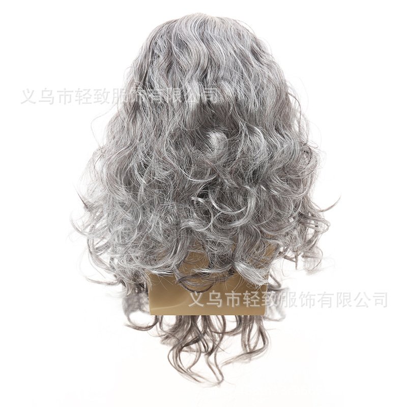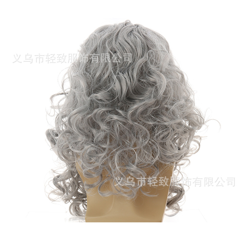 おばあさんの短いカールのハロウィンのかつらはCOSの老人のおばあさんの役を飾って老人のかつらを演じます。