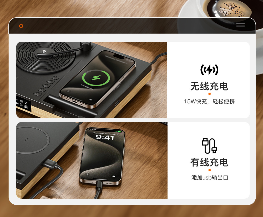 レトロワイヤレス充電Bluetoothスピーカー-D01-XH