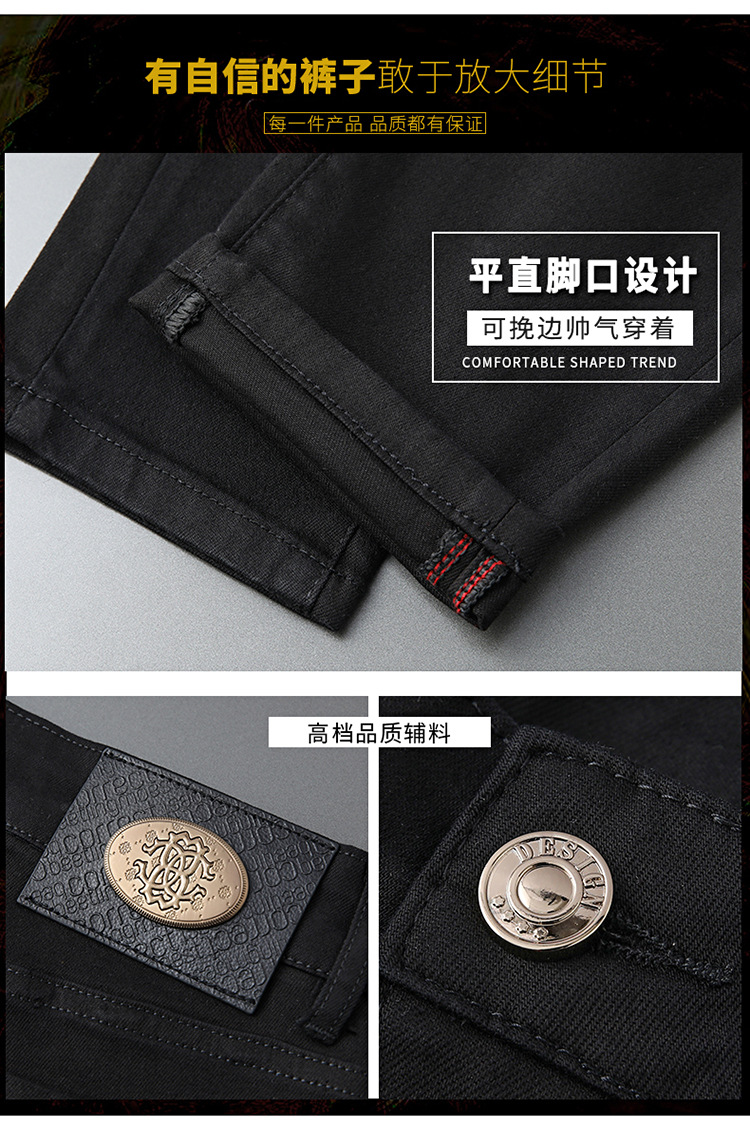 新塘新商品潮牌刺繍ジーンズ男修身小足早春新品男性夏カジュアル長ズボン男
