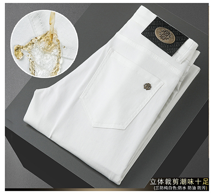 外国貿易のヨーロッパの商品の2024ハイエンドのジーパンの男性の軽くて豪華なカジュアルな小さい足のズボンのファッションの修身のファッションのブランドの夏の薄い金