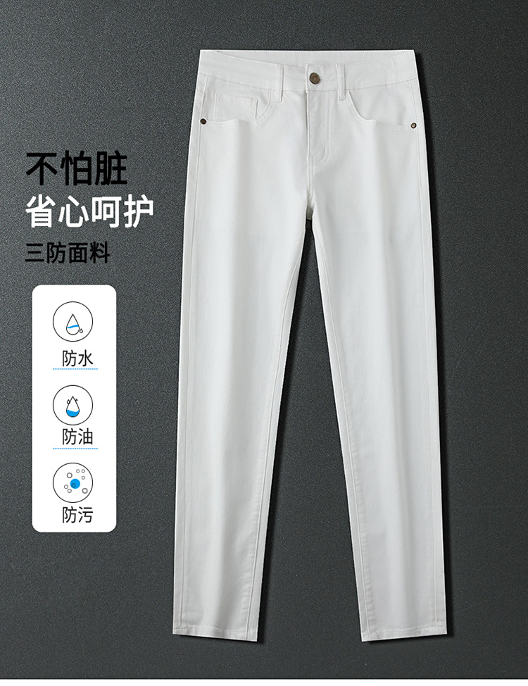 新塘工場は軽豪華ジーンズ男性黒白色三防生地のカジュアルな弾力を提供しています。