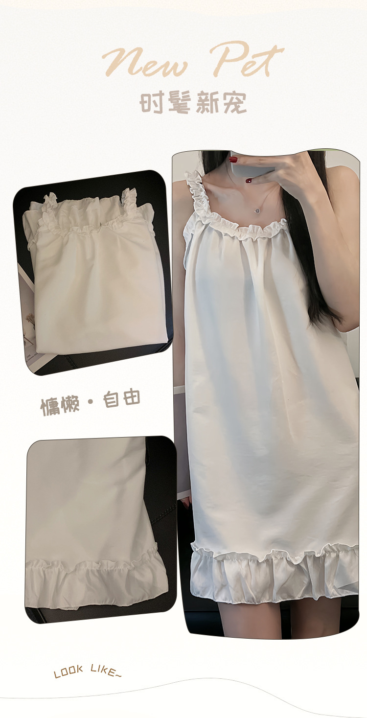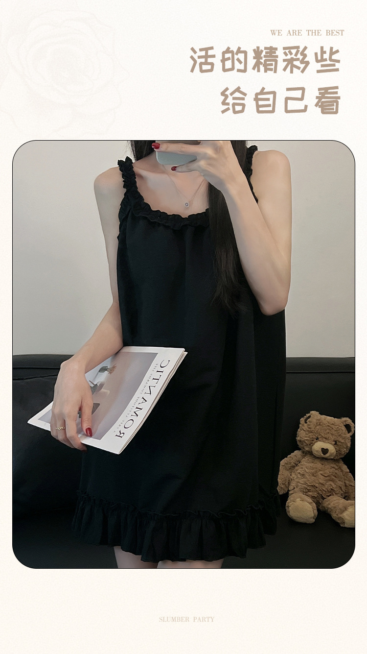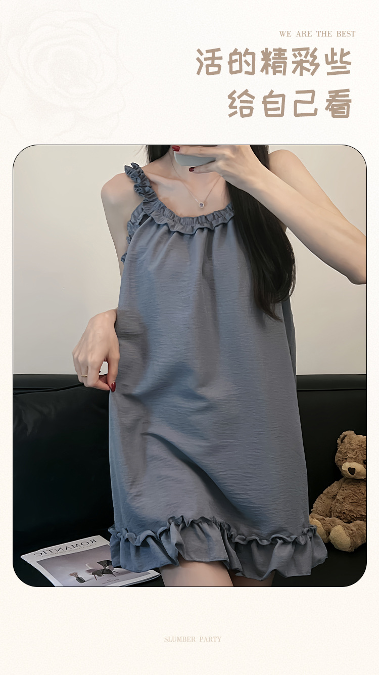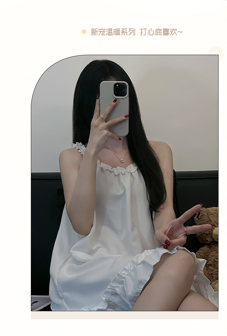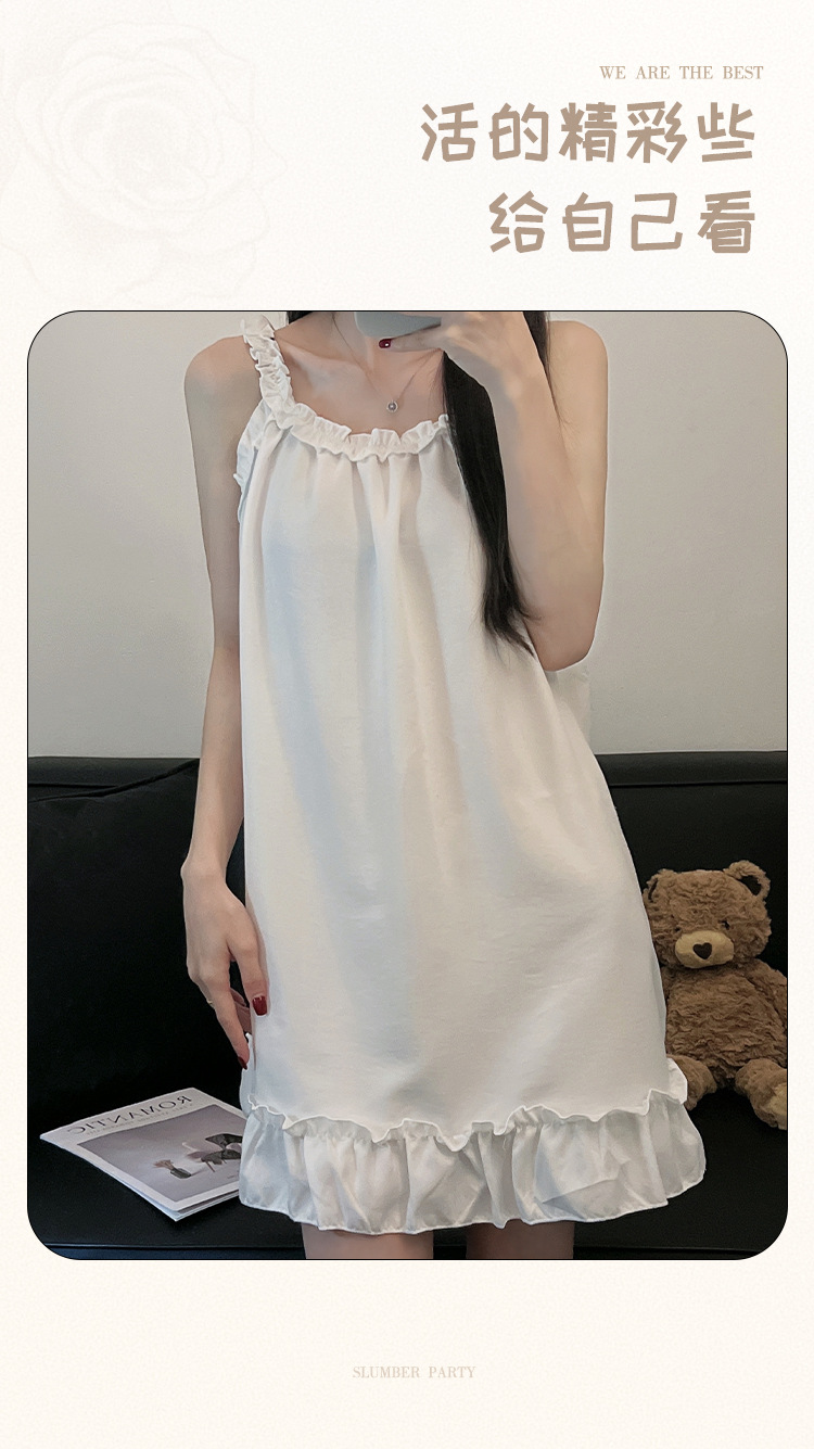 夏のストラップの寝スカートの女性の薄いタイプの甘くて純粋な風の学生の寮のレースのワンピースの家の服は外に女性を着ることができます。