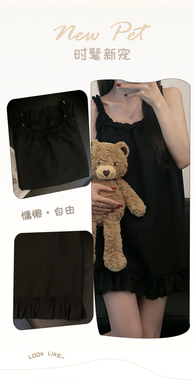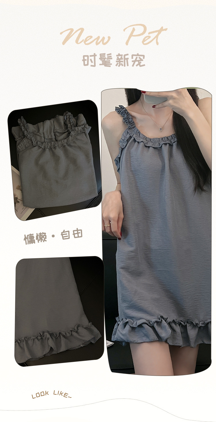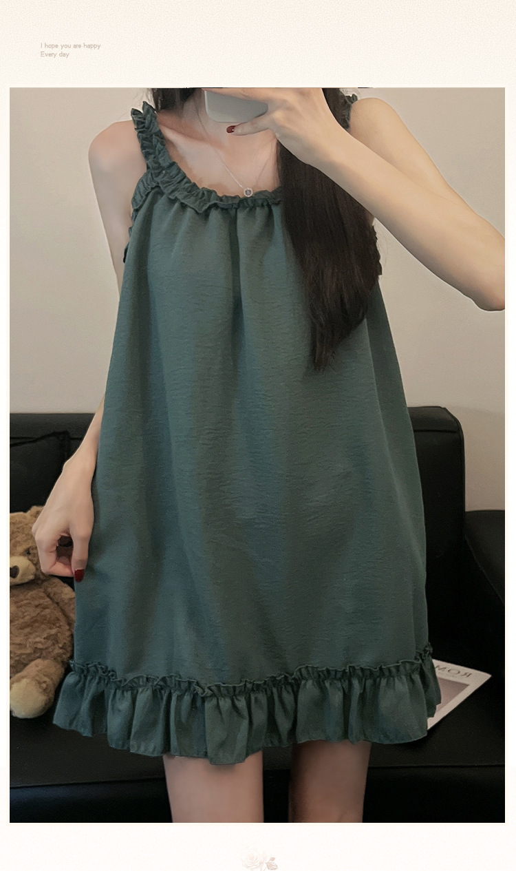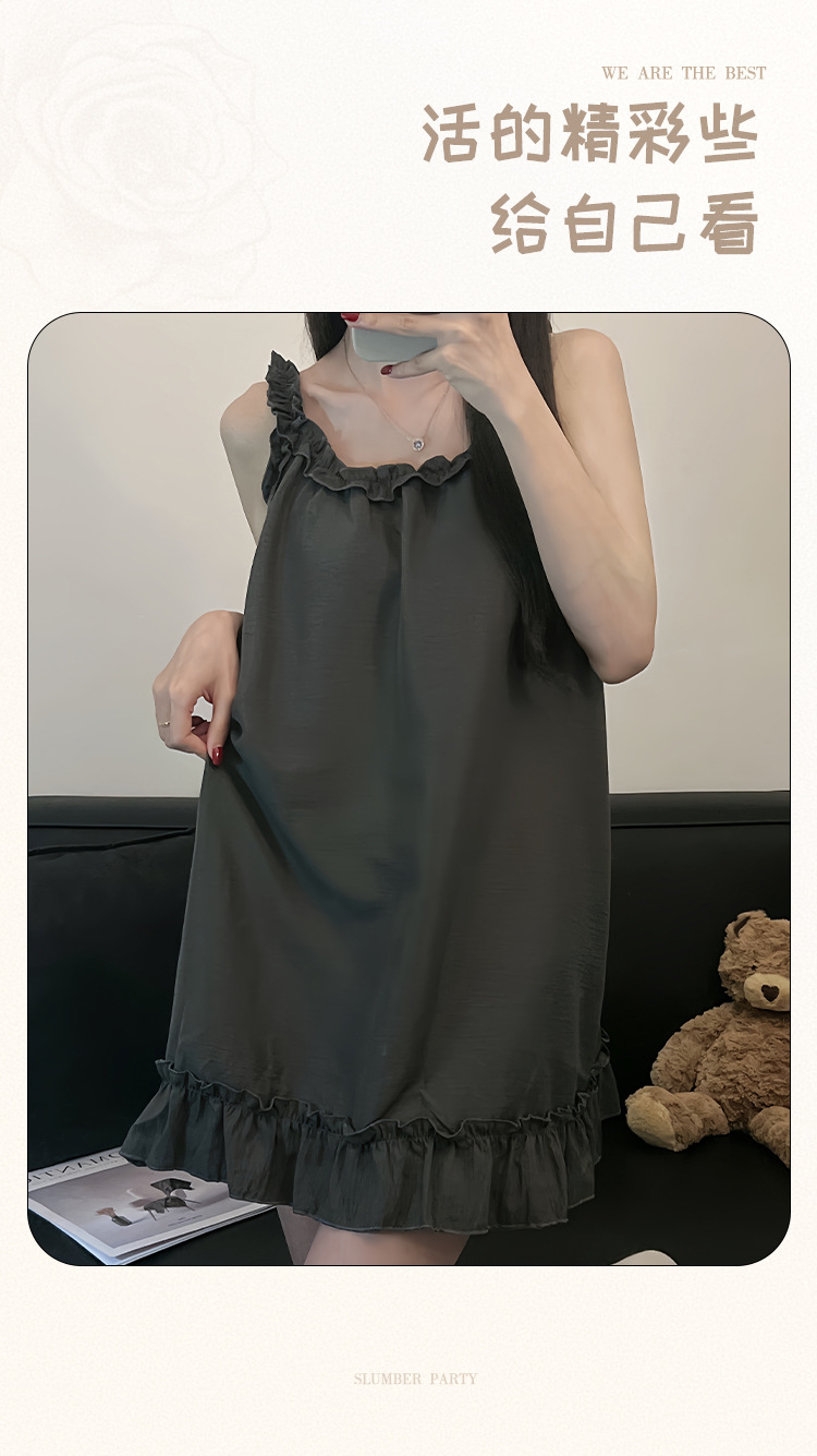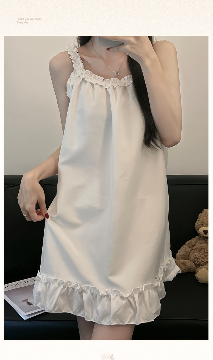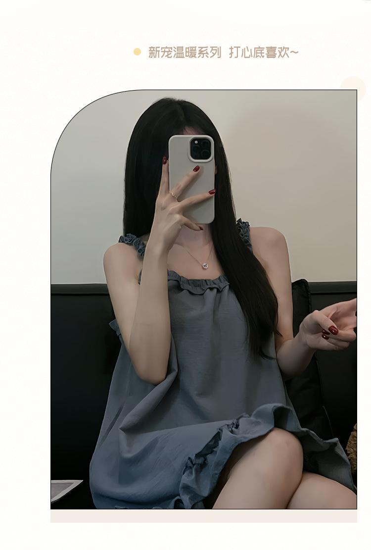 夏のストラップの寝スカートの女性の薄いタイプの甘くて純粋な風の学生の寮のレースのワンピースの家の服は外に女性を着ることができます。