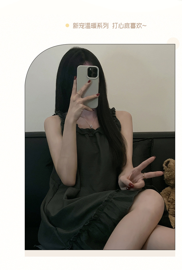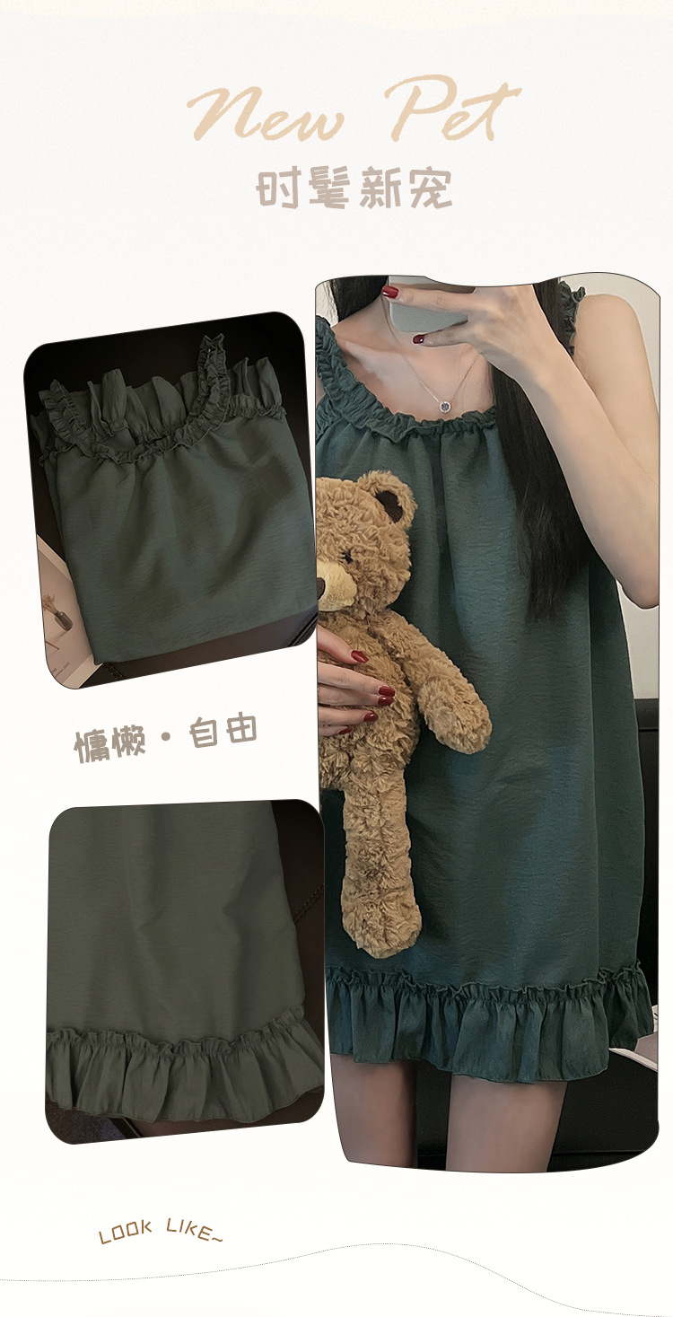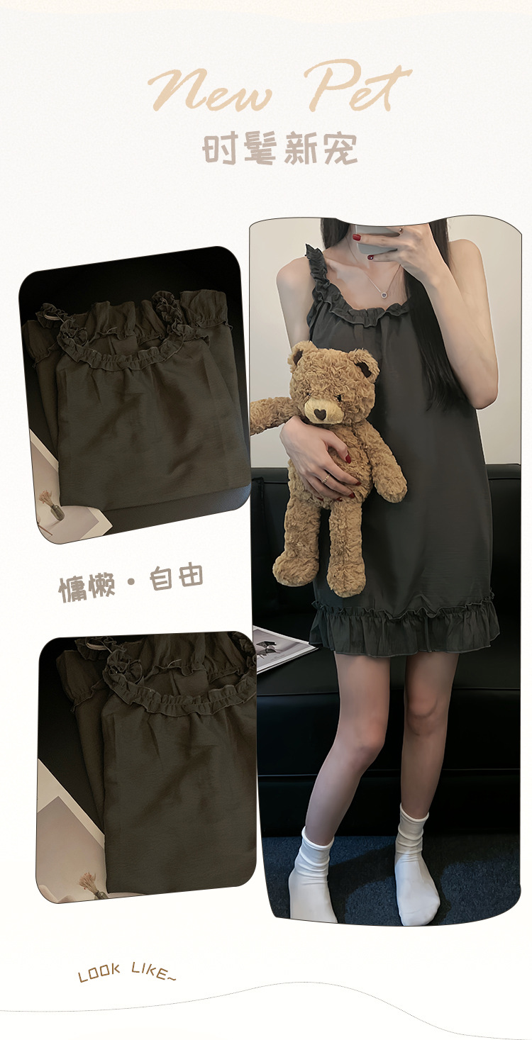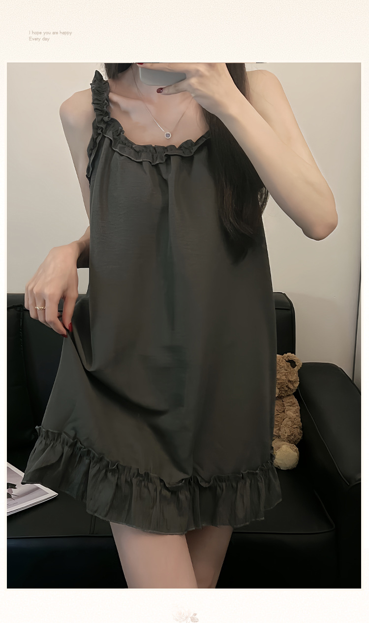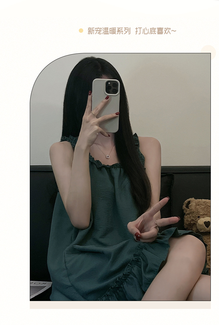 夏のストラップの寝スカートの女性の薄いタイプの甘くて純粋な風の学生の寮のレースのワンピースの家の服は外に女性を着ることができます。