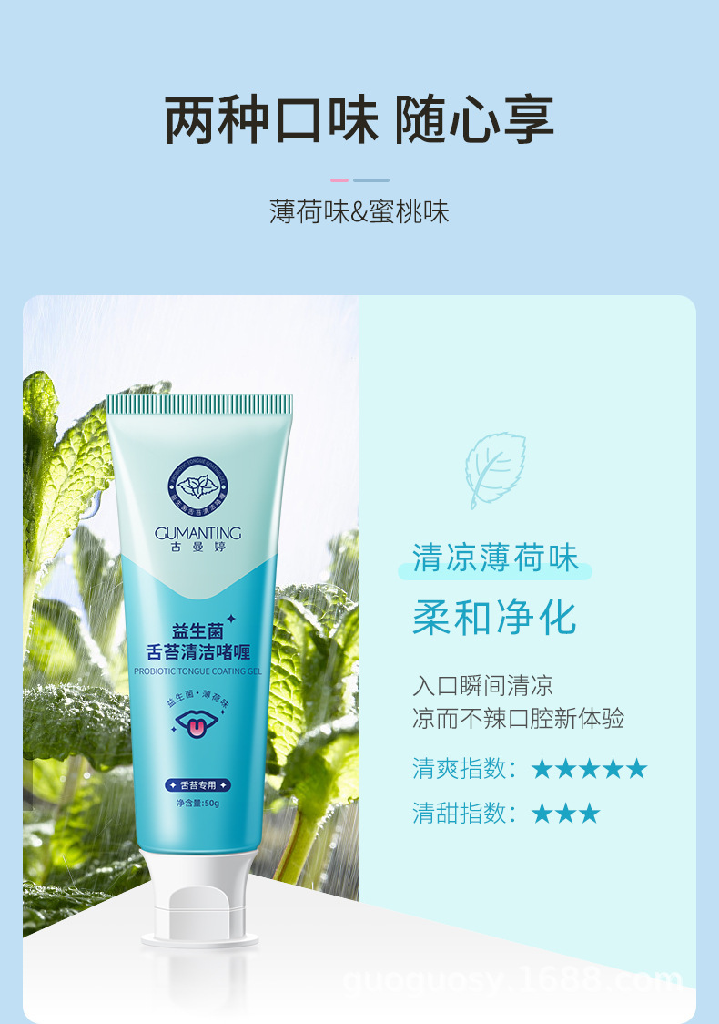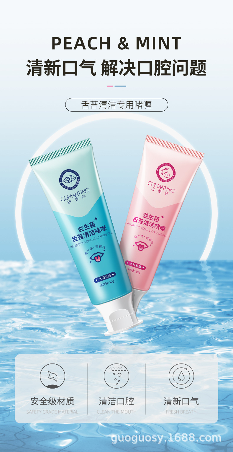 厂家批发古曼婷舌苔清洁啫喱膏清新口气去口臭刮舌苔异味现货代发