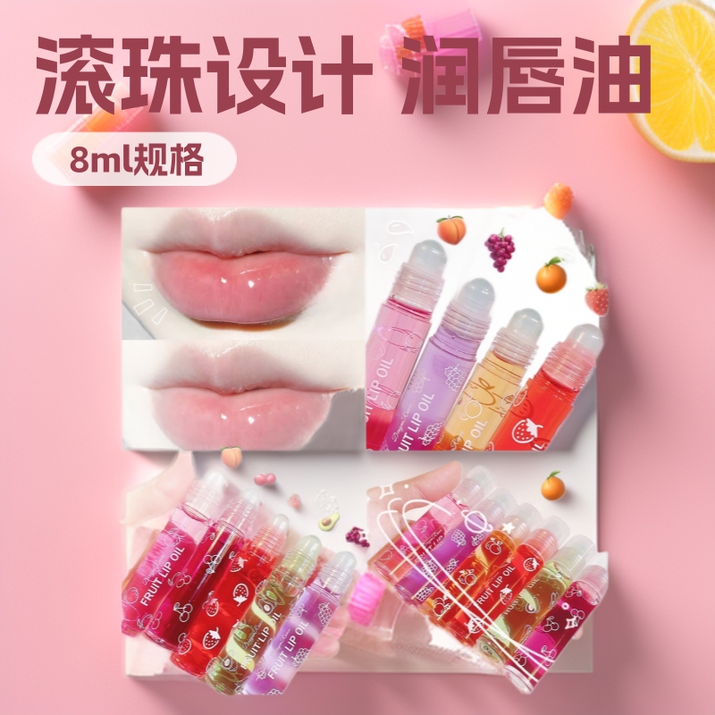 越境走珠唇油保湿潤いリップクリーム液体補水ボール口油無色透明果物牛油果唇油