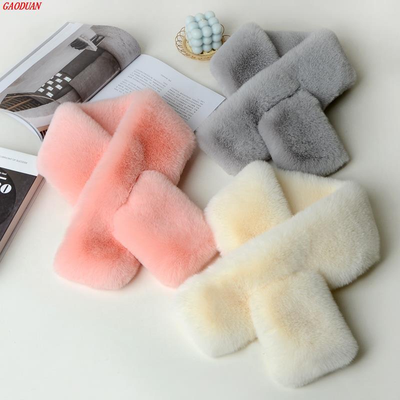 女士圆领围巾秋冬氛围感韩系纯色獭兔毛毛脖套轻奢高级围脖批发