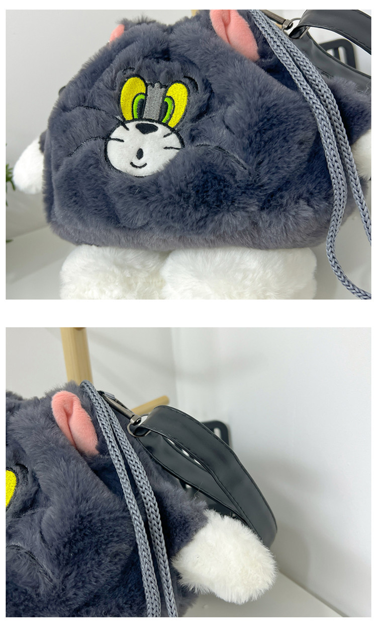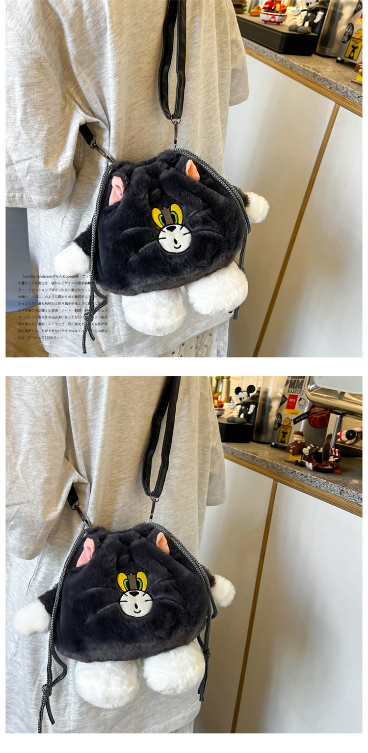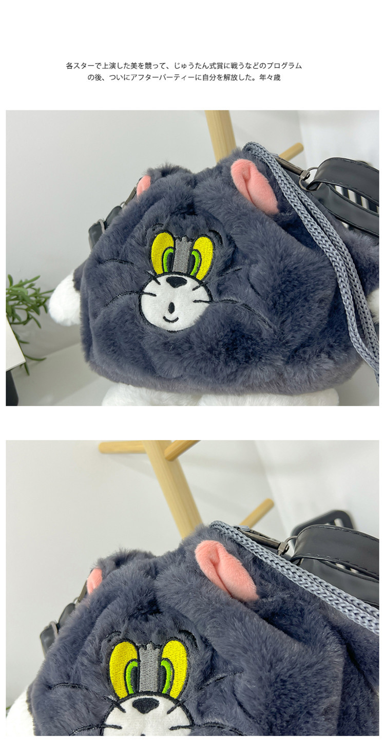 漫画の猫とネズミの巾着バッグ、高品質で可愛いぬいぐるみ斜め掛けバッグ、個性的で面白い収納用人形ショルダーバッグ