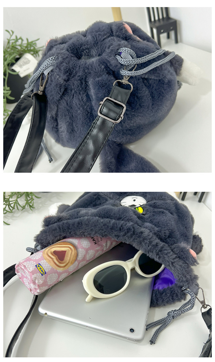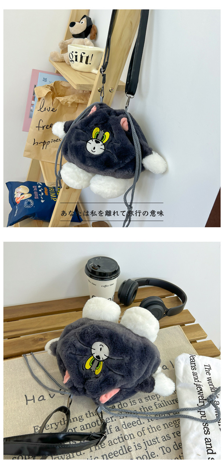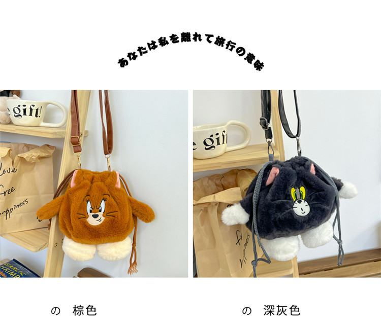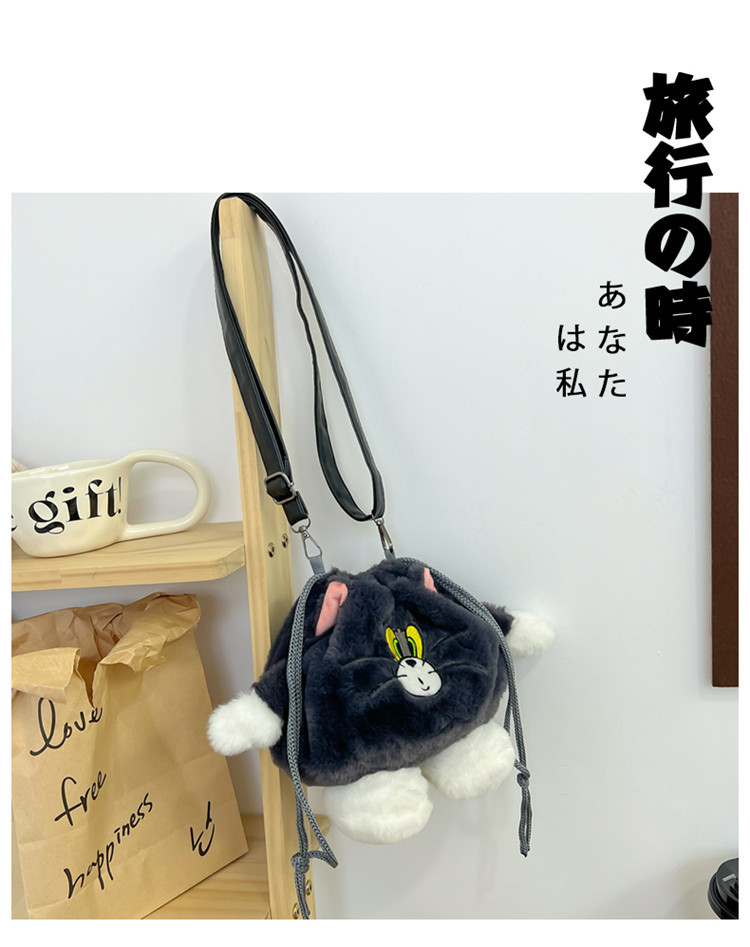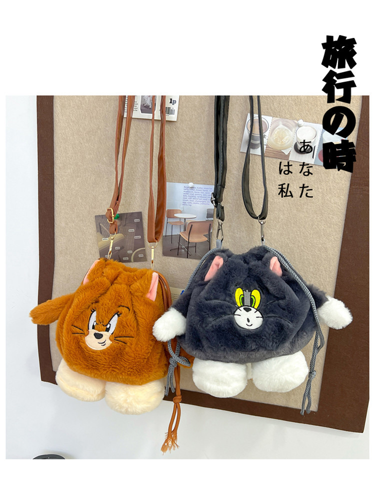 かわいい女の子らしい猫とネズミのぬいぐるみバッグ、高品質で個性的な漫画風巾着斜め掛け収納バッグ