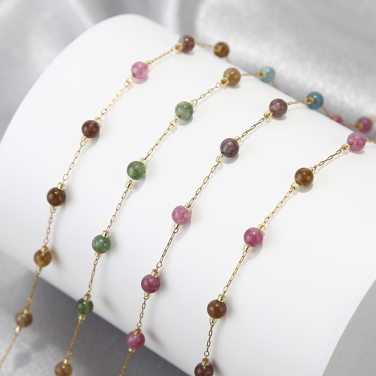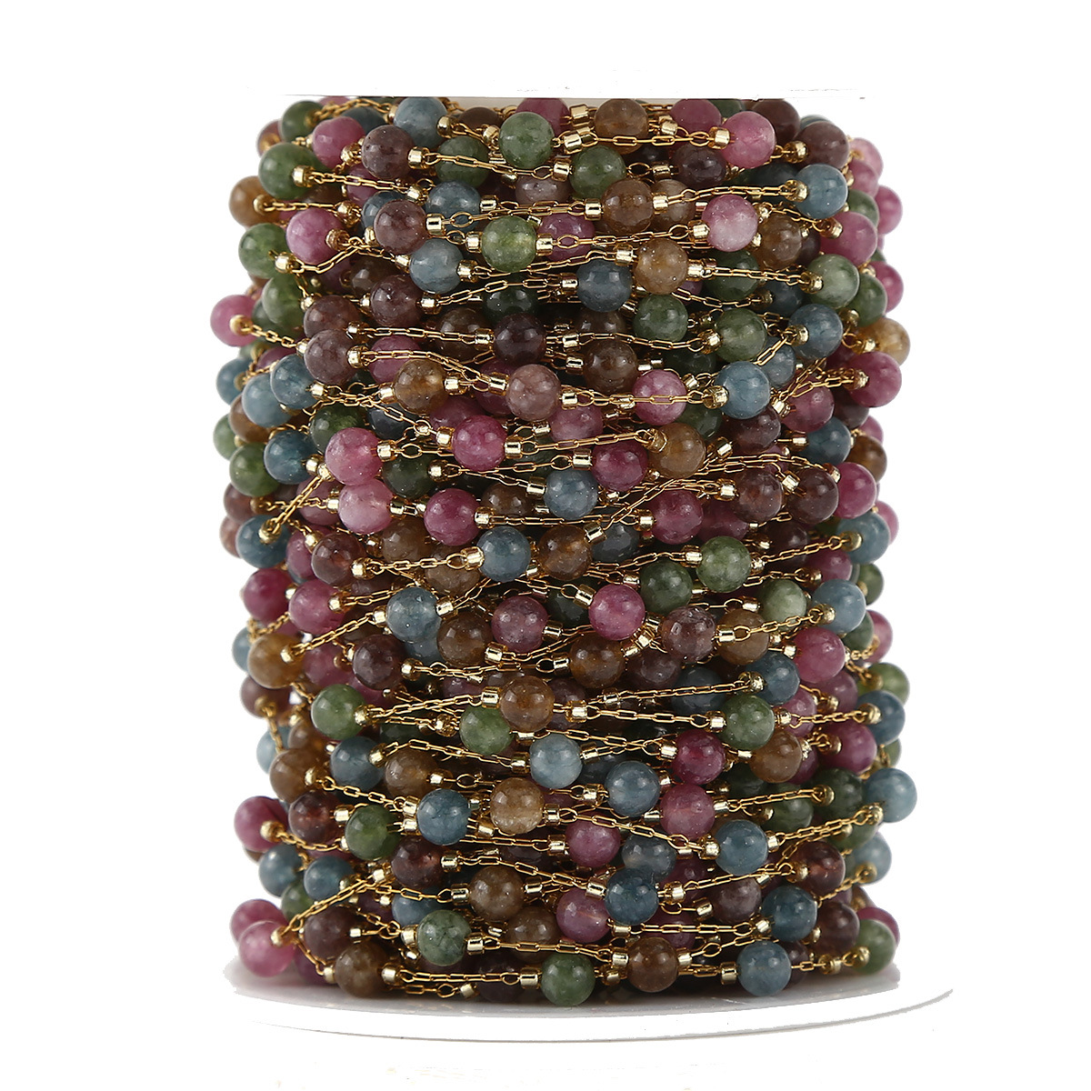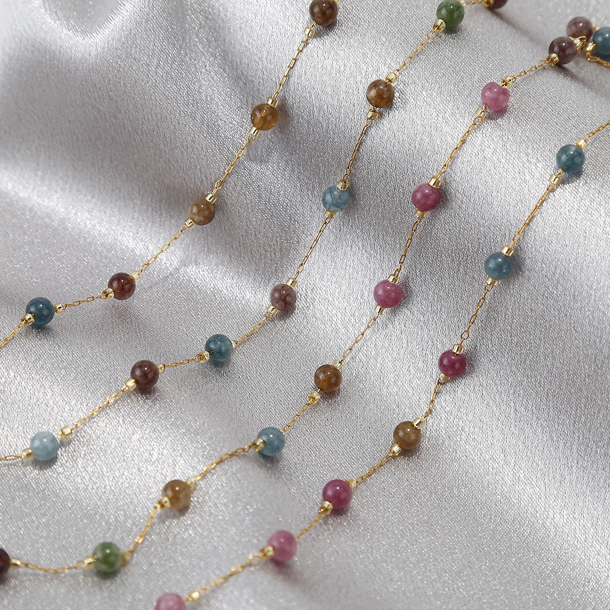 ステンレス丸石ビーズチェーン手串ネックレス混色石セーターチェーンチタン鋼diyアクセサリーアクセサリー