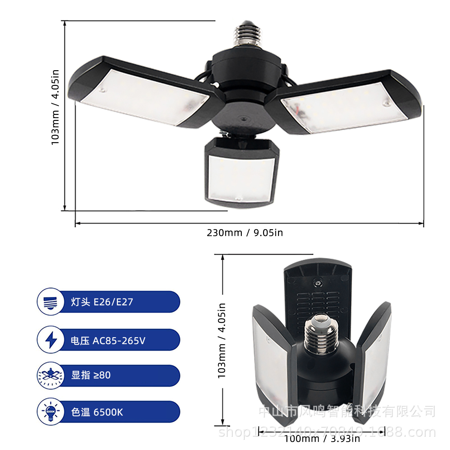 Led変形折り畳み車庫灯工鉱灯レーダー光感三葉折り畳み灯アマゾン私型源メーカー
