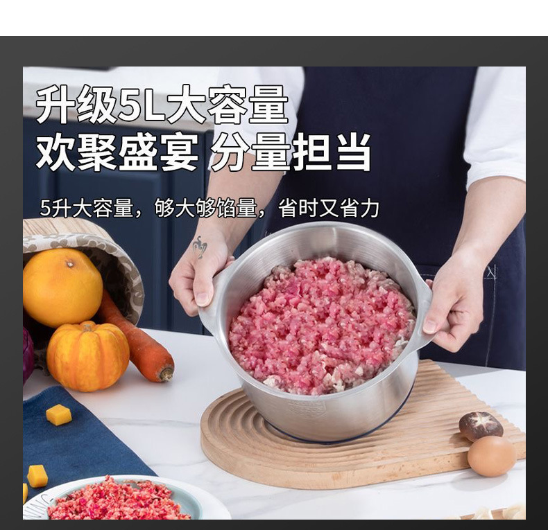新款不锈钢全自动绞肉机家用搅拌机5L大容量绞打肉馅多功能料理机