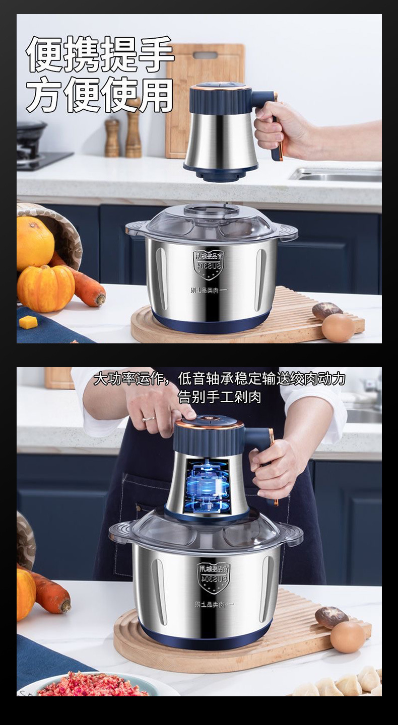 跨境大容量绞肉机家用不锈钢多功能料理机大功率电动搅肉机辅食机