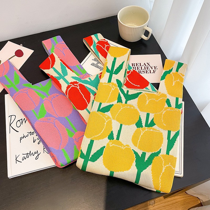 新商品結婚お土産バッグ可愛い花ニットバッグ誕生日プレゼント国慶節大容量プレゼントハンドバッグ