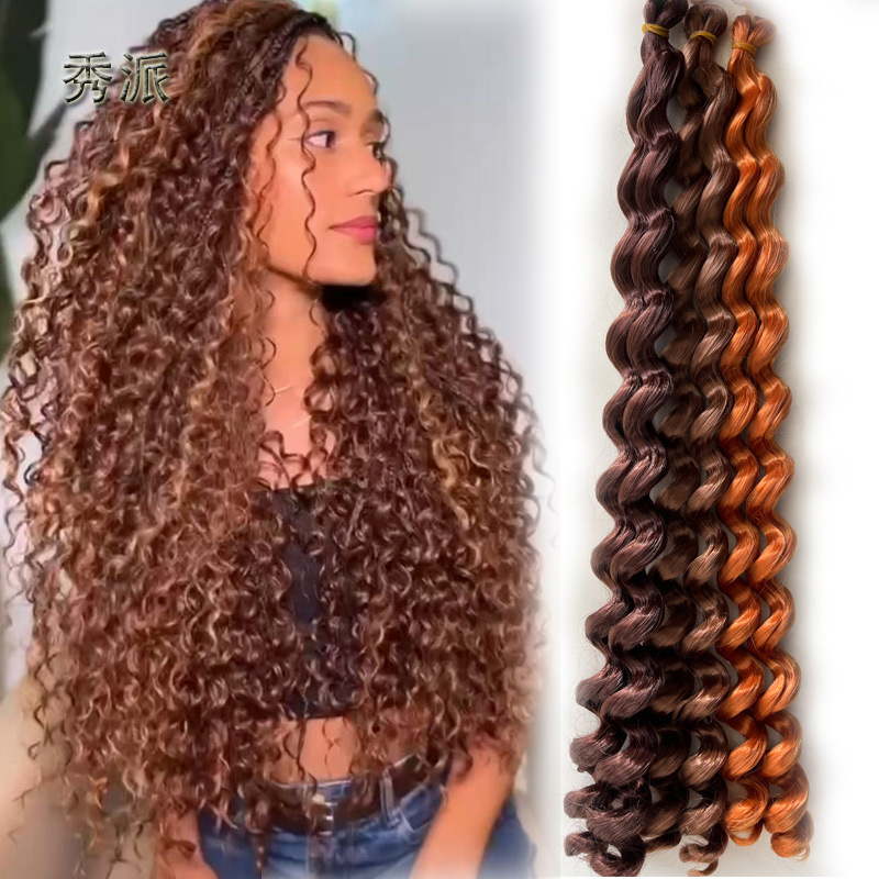 欧美跨境化纤发把22inch Deep Wave Bulk Hair假发钩针发100g每包