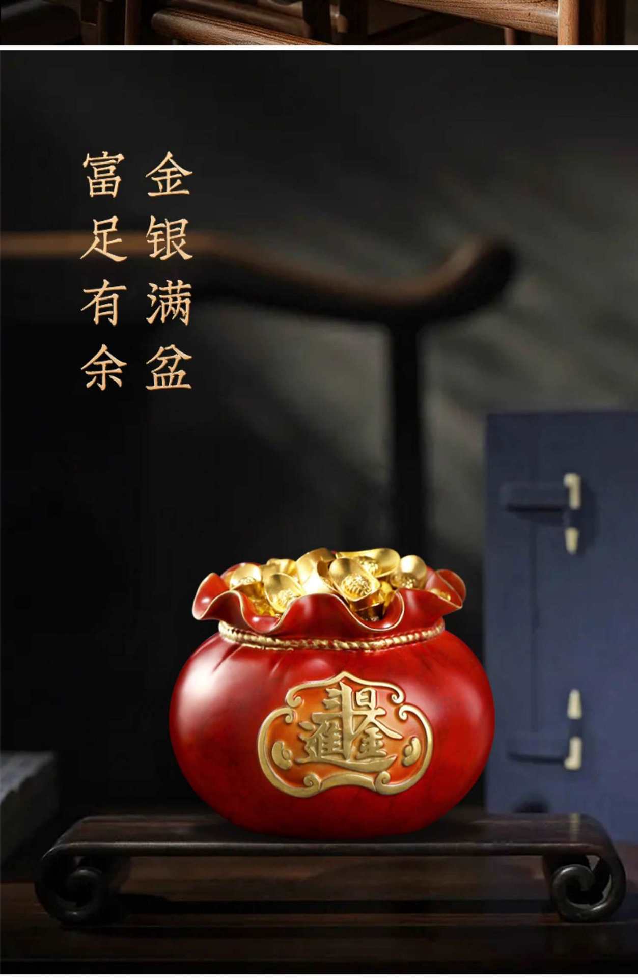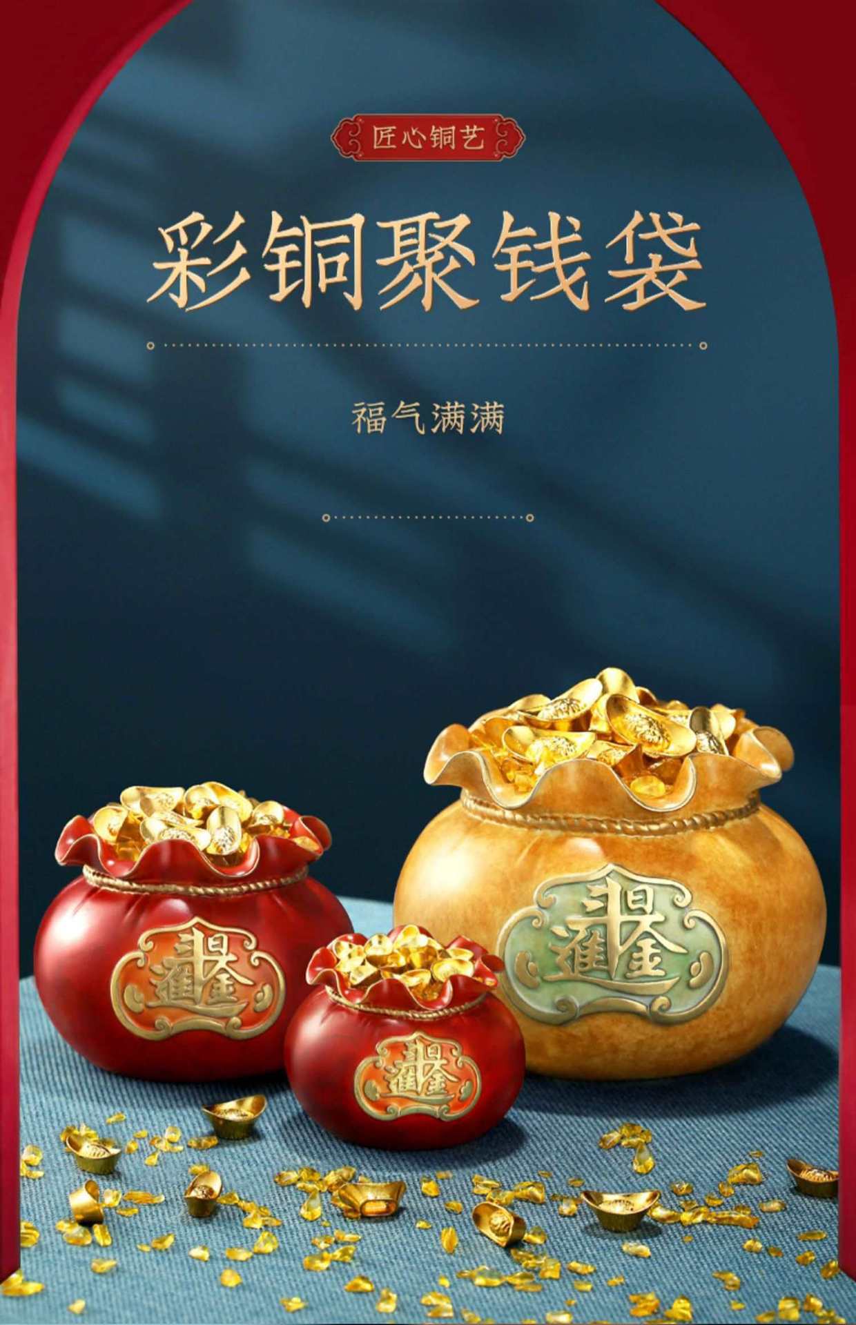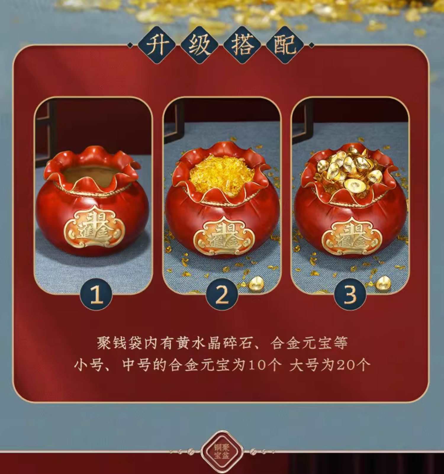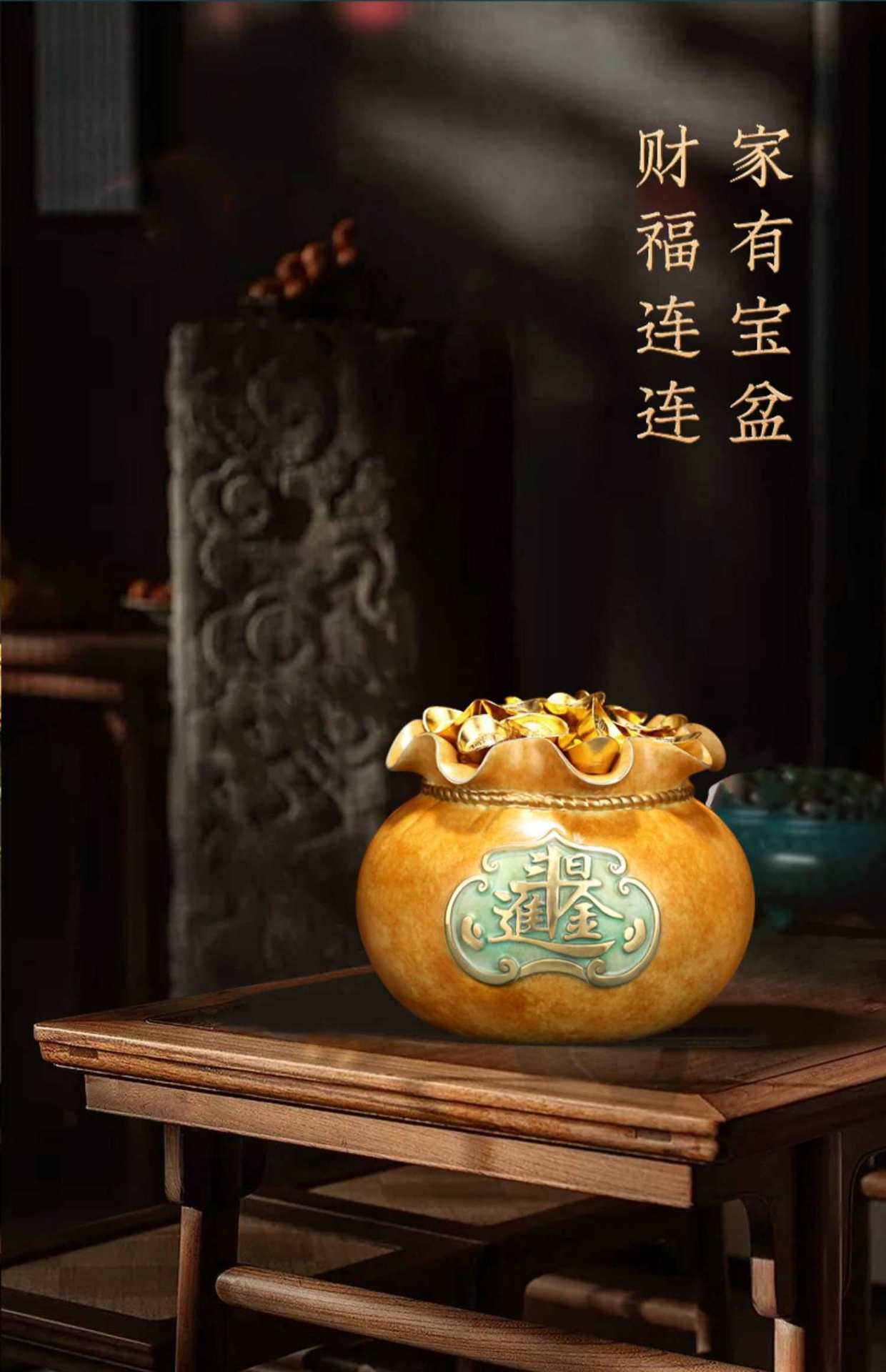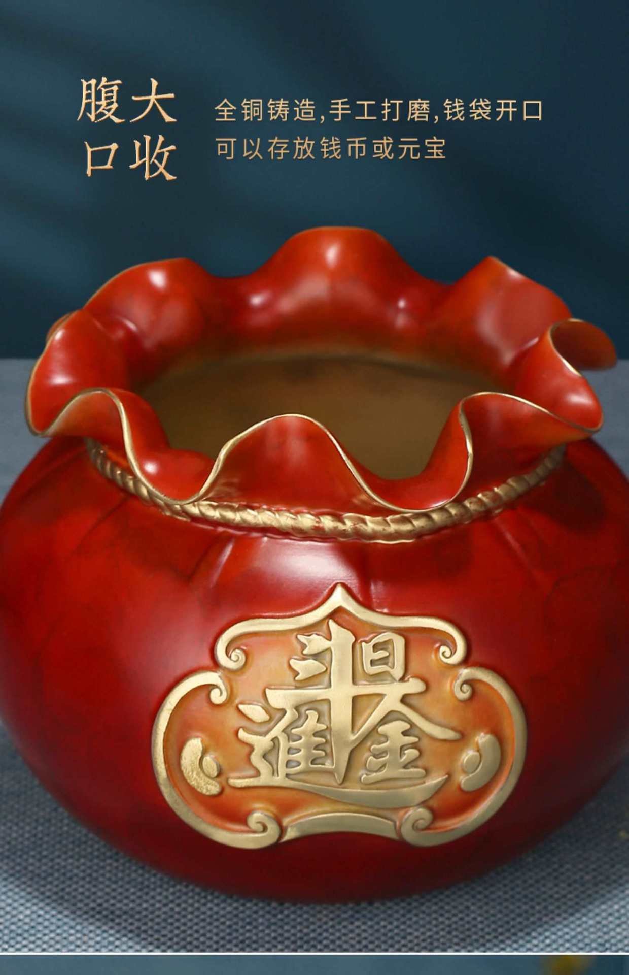 彩銅聚宝盆置物聚財貯金箱福袋銭袋家庭装飾客間真鍮開業プレゼント