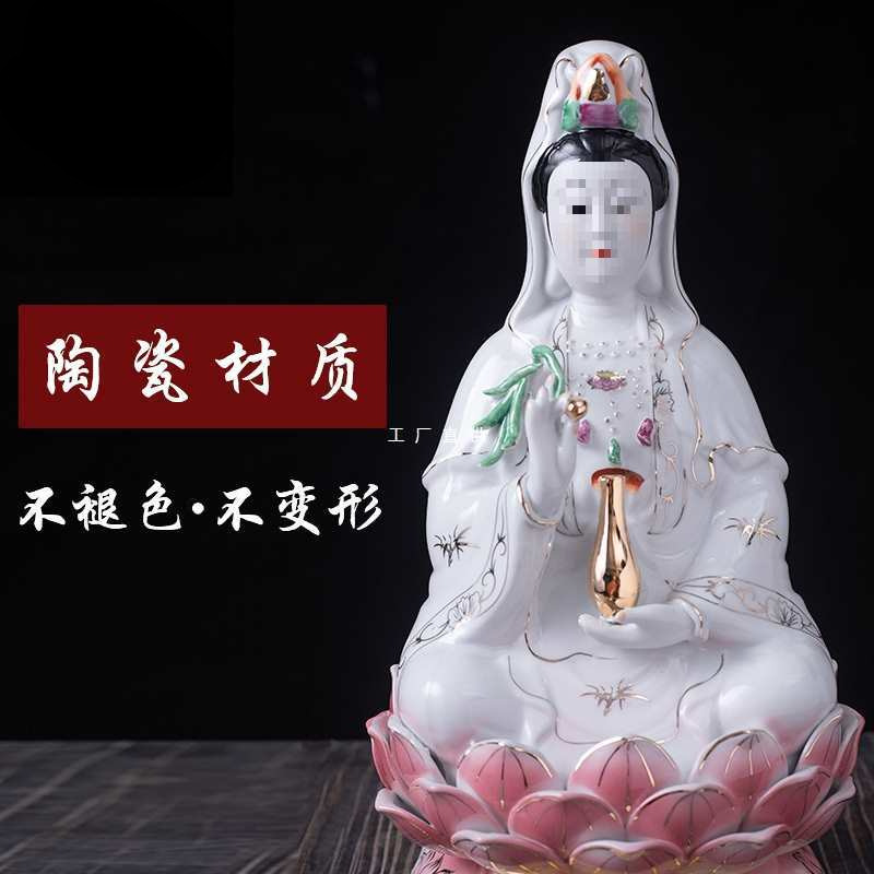 陶磁器観音菩薩の家庭用坐蓮観音仏像南海観世音菩薩の蓮の花の置物の大きさを卸売りします。