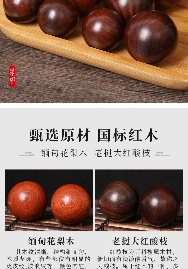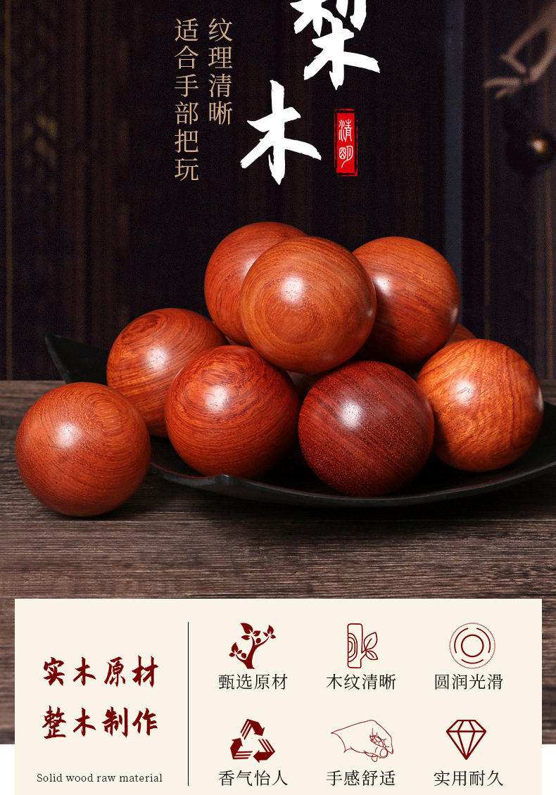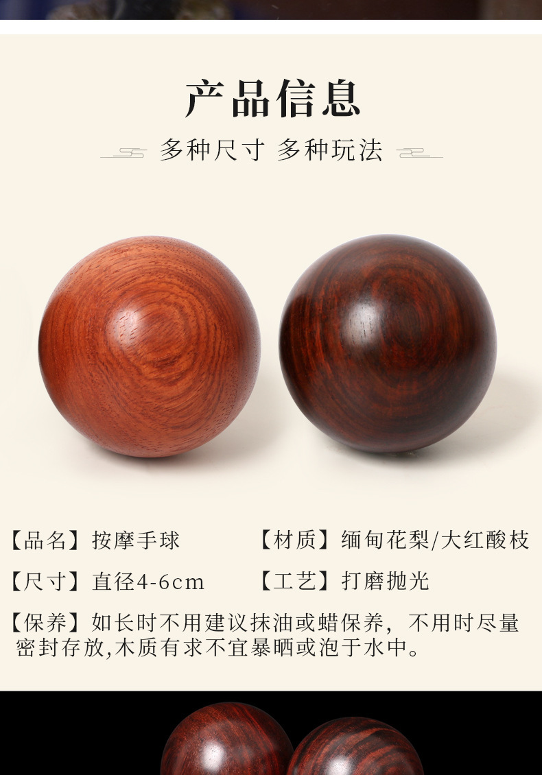 黄花梨実木フィットネスハンドボール紫光檀高齢者紅木保健ボール手部マッサージボール